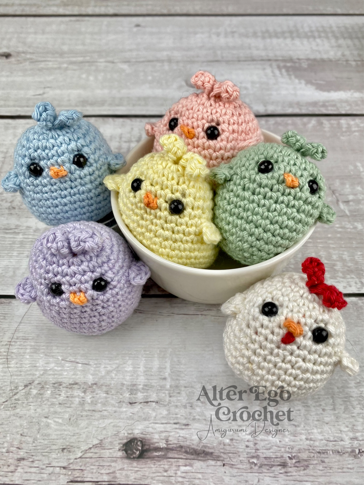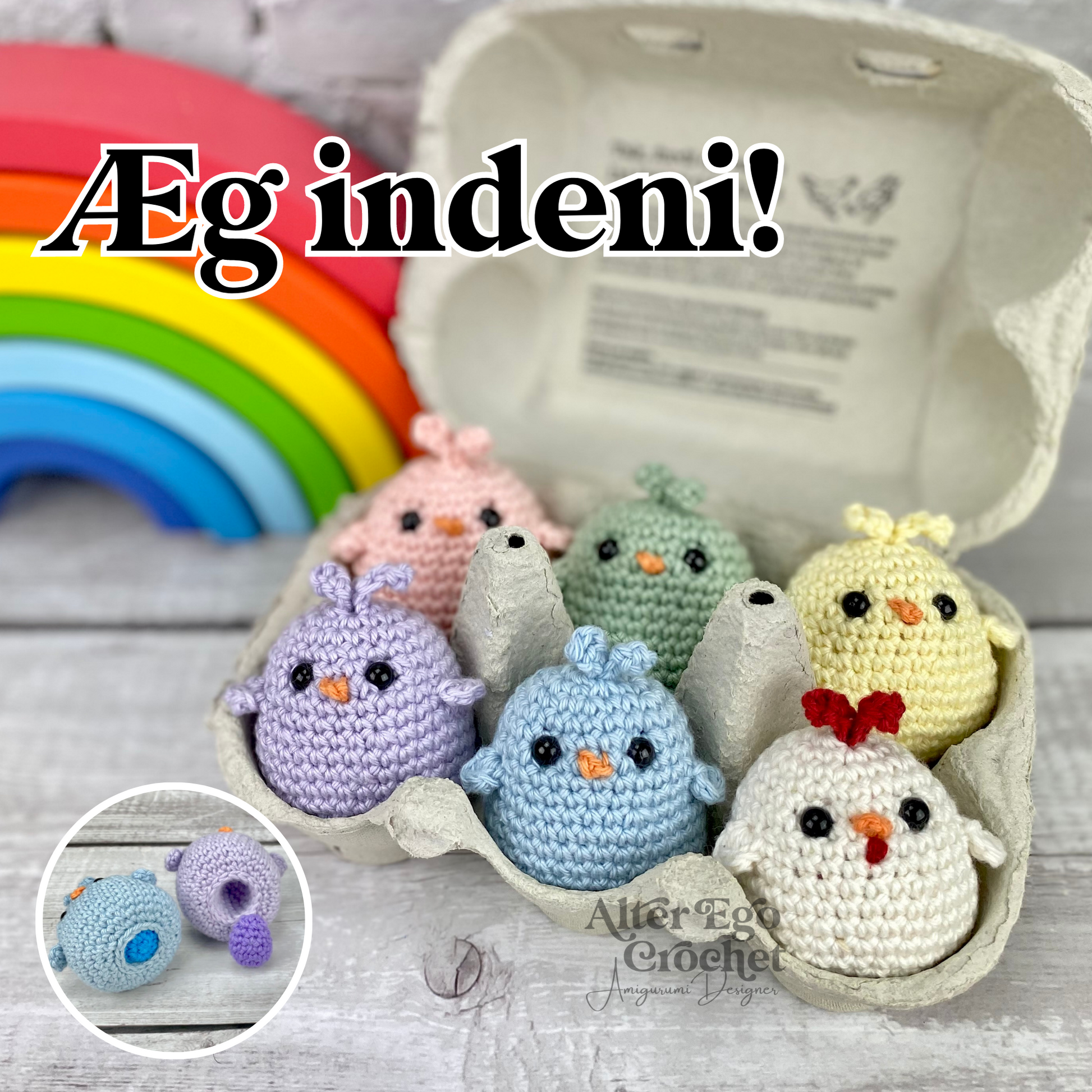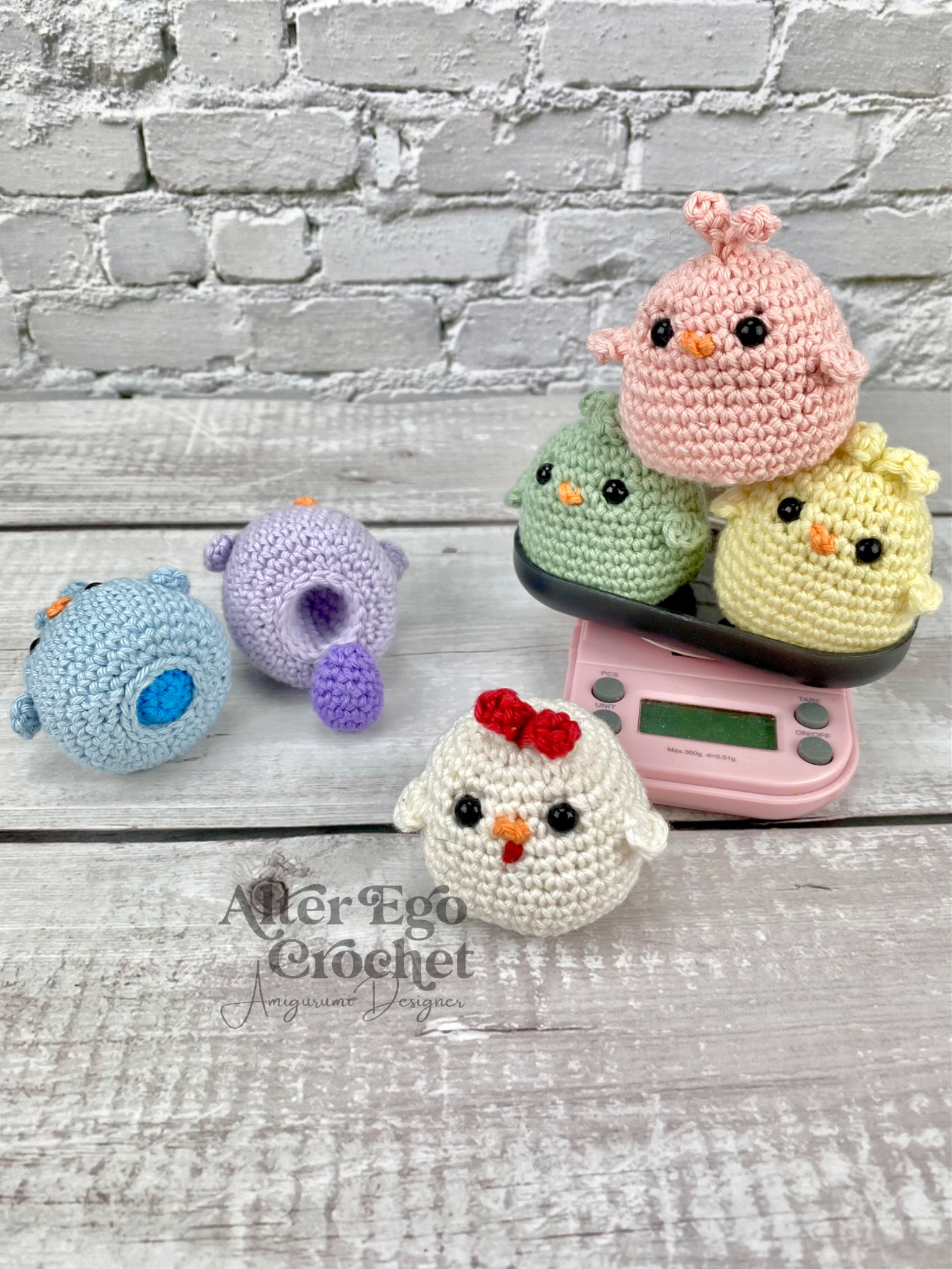 Kyllingen bliver 5,5 cm, hvis du bruger samme garn og hæklenål som mig. Du kan sagtens bruge en anden nål og andet garn, hvis den skal være større eller mindre.