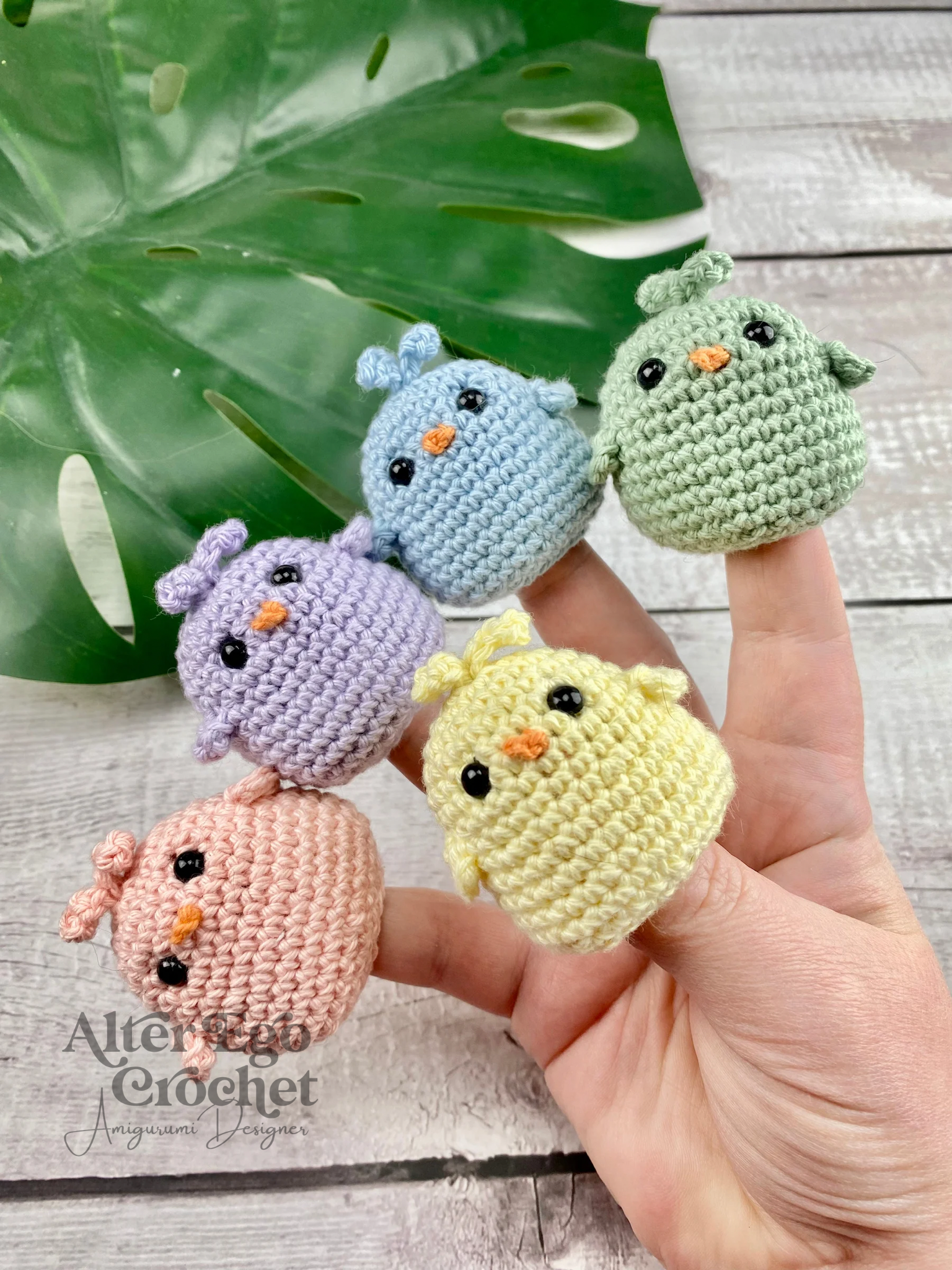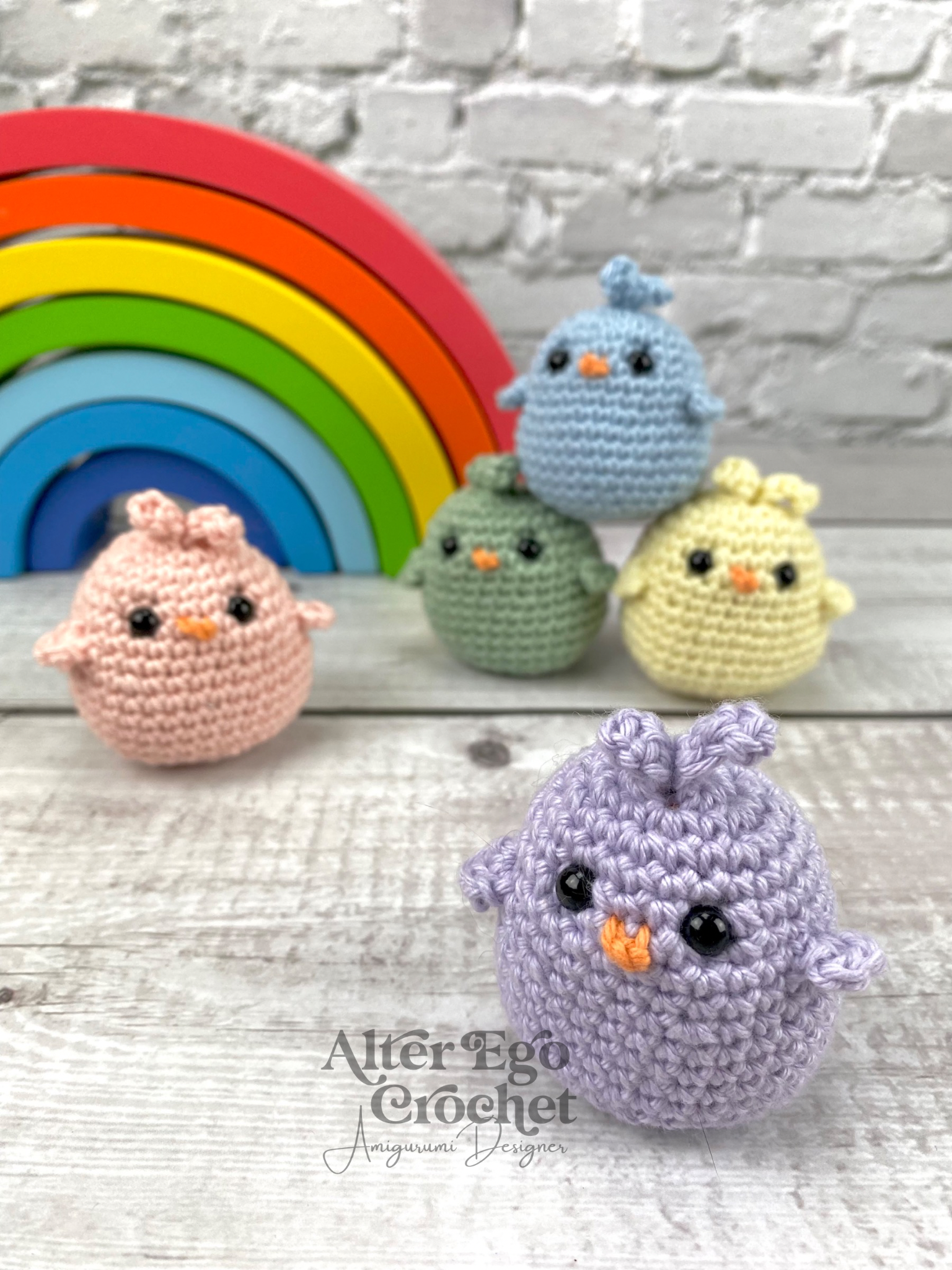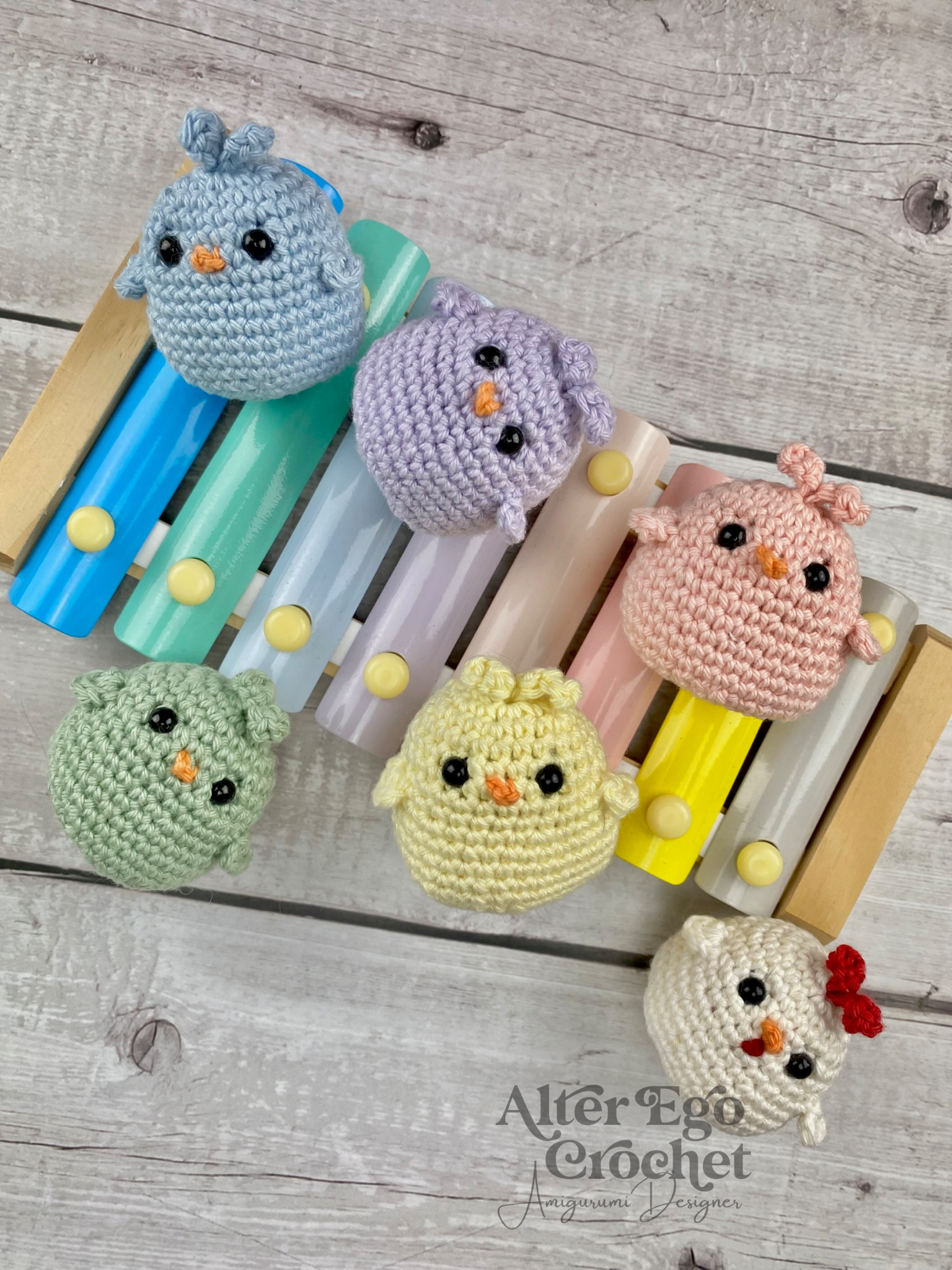 Kyllingen bliver 5,5 cm, hvis du bruger samme garn og hæklenål som mig. Du kan sagtens bruge en anden nål og andet garn, hvis den skal være større eller mindre.