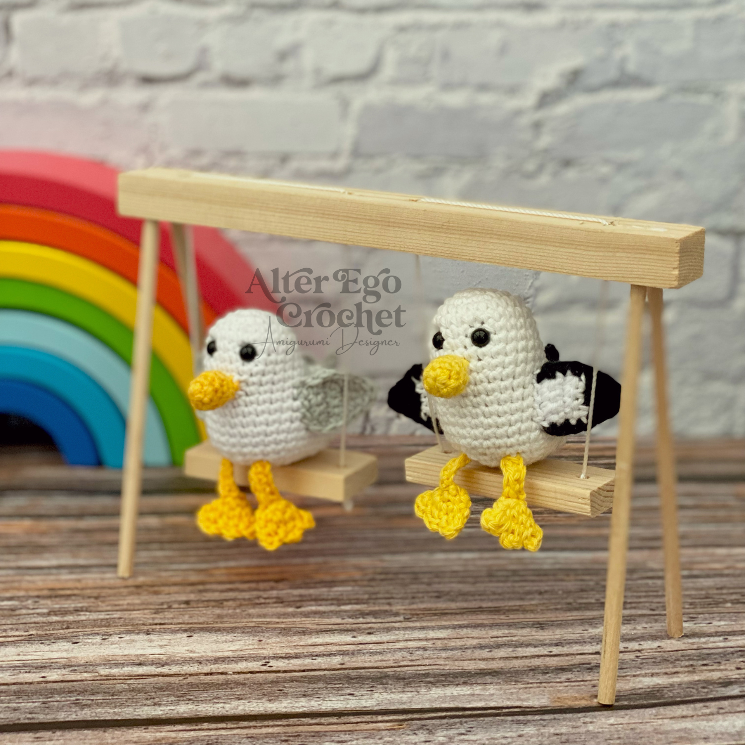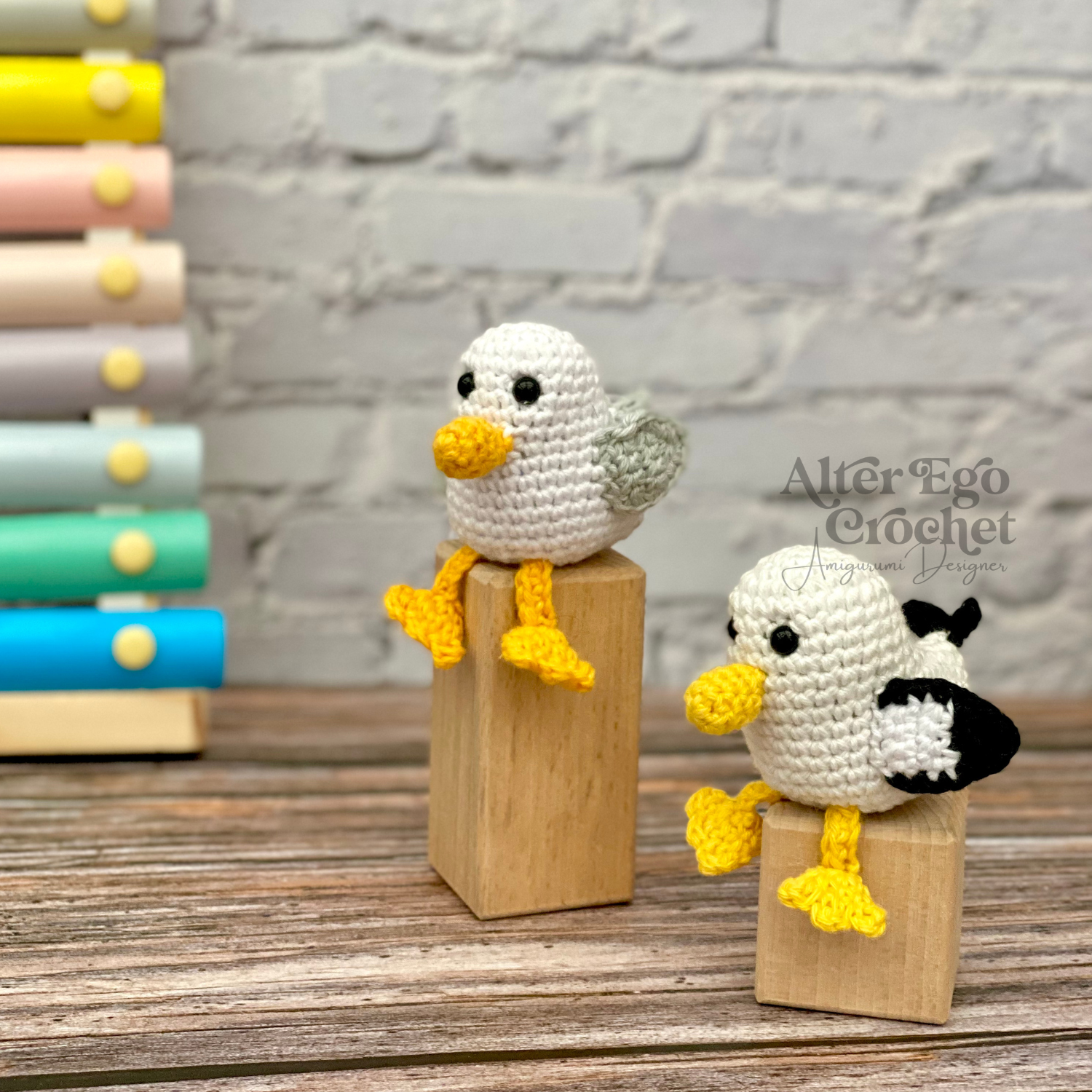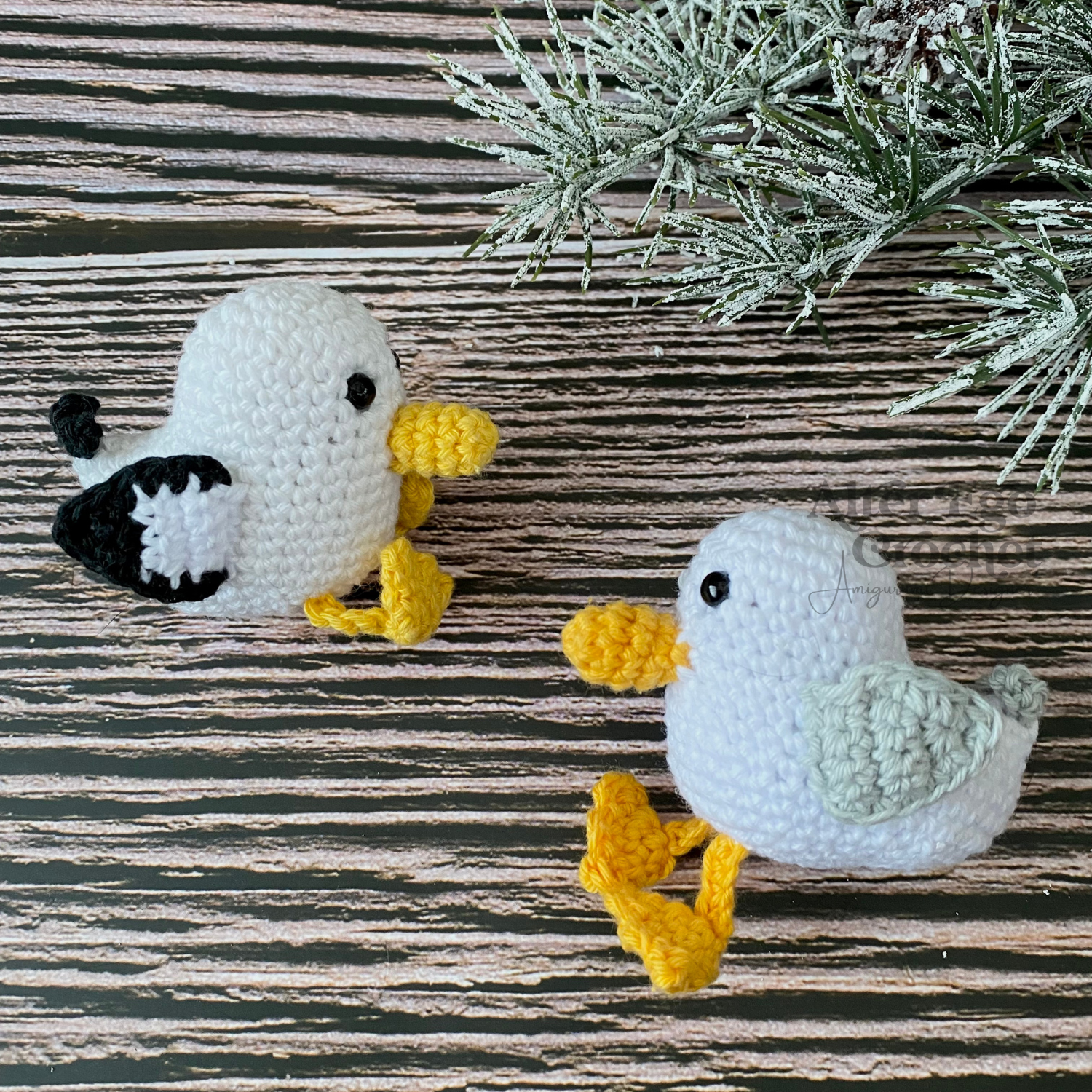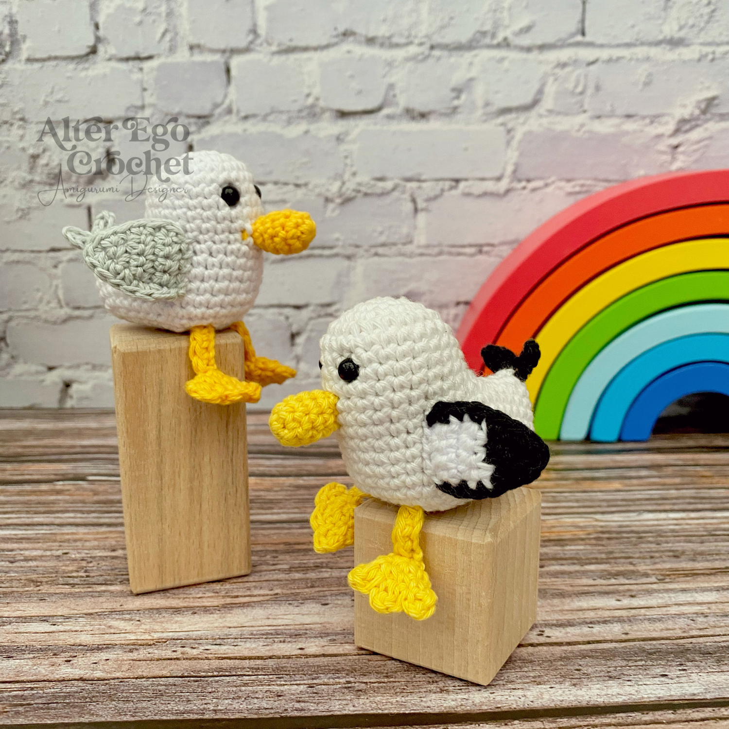 Albie & Steven kan hækles næsten uden montering. I opskriften kan du selv vælge, om du vil hækle delene sammen (og så er det kun vingerne, der skal sys på) eller om du vil sy det hele på (dette egner sig bedst til begyndere).
