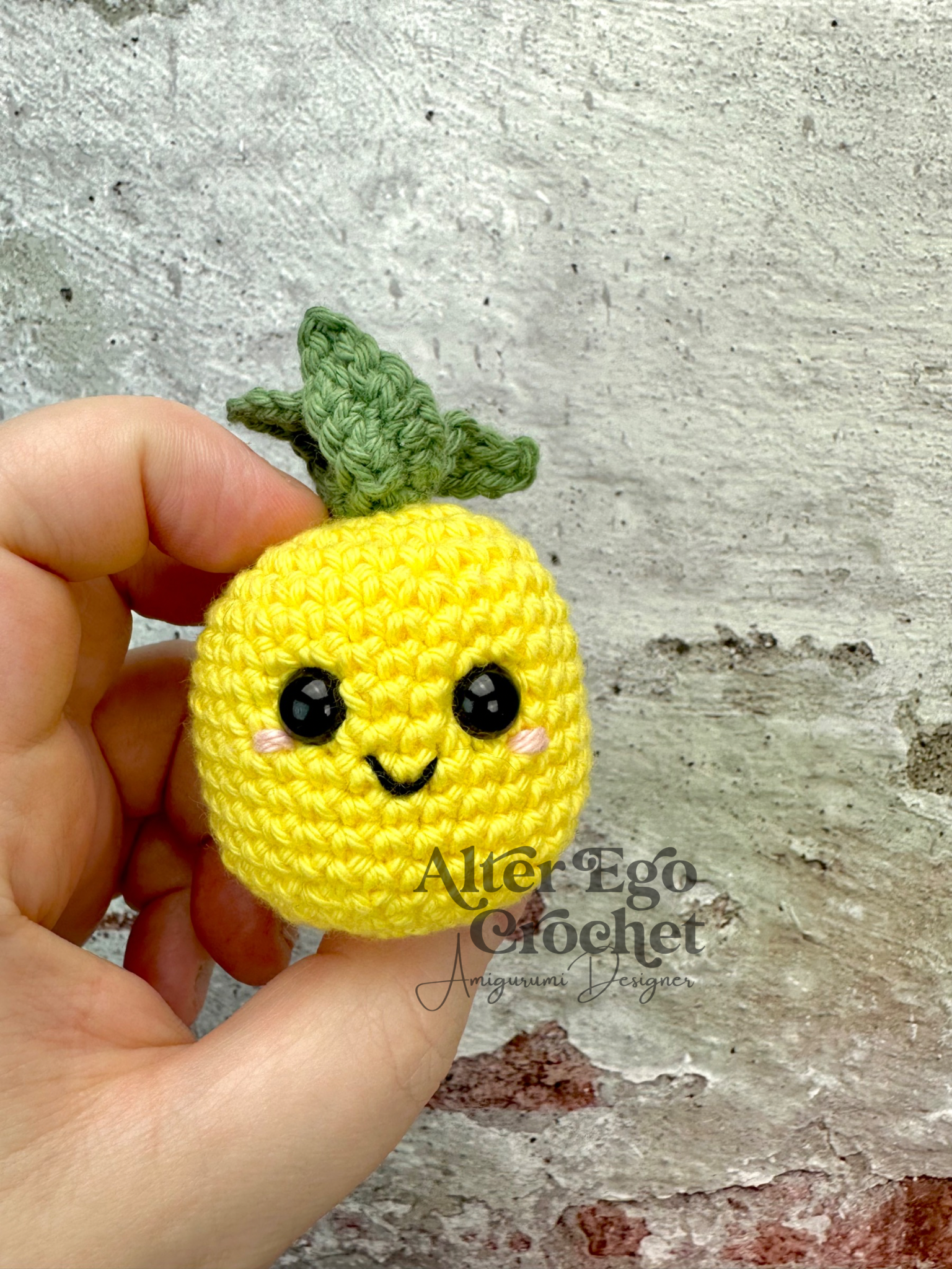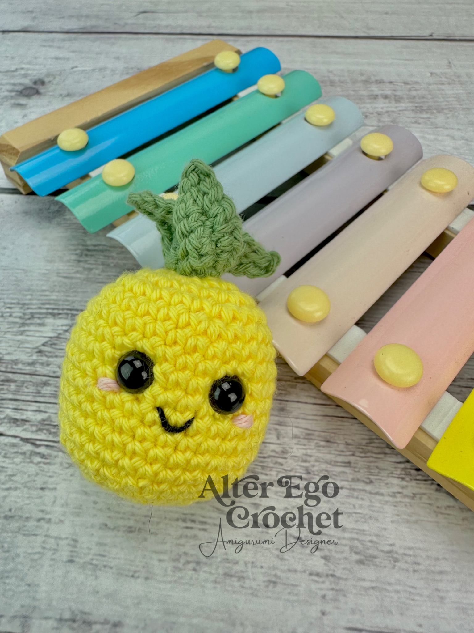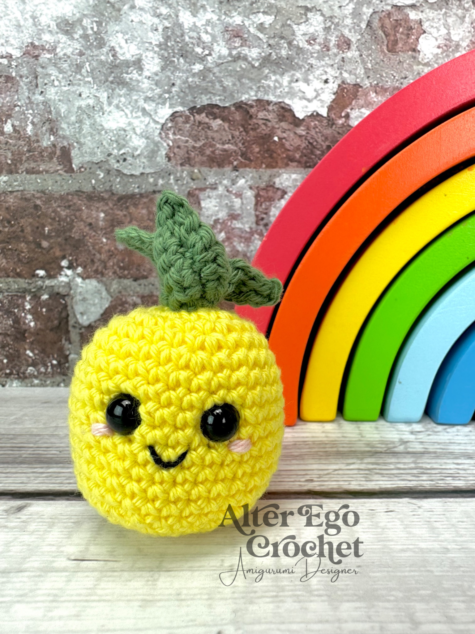 - Garn. Jeg har brugt 8/4 bomuld. Du skal bruge 6 g gul og 2 g grøn og lidt lyserød