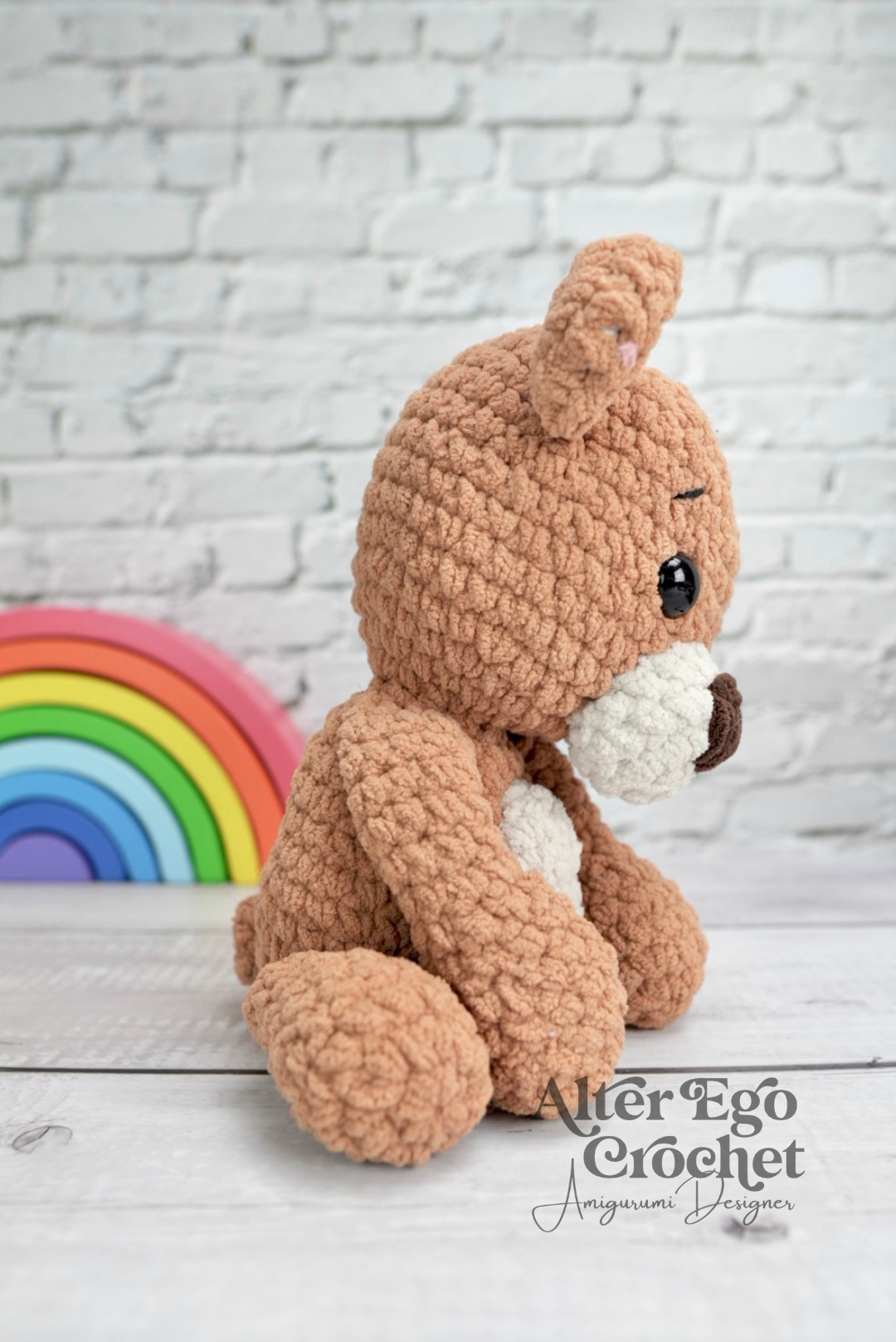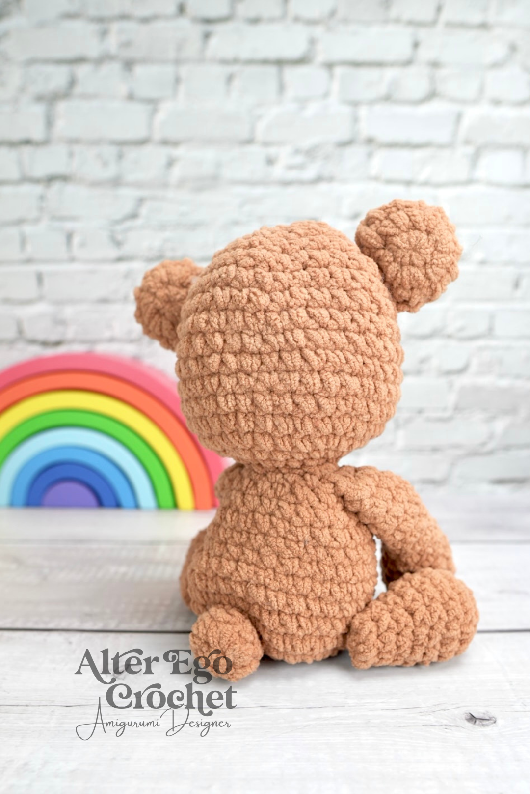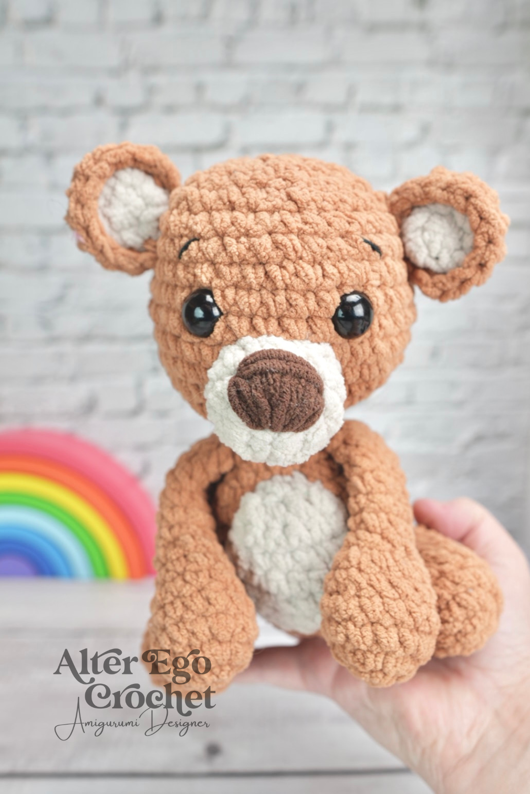 Buddy bliver 19 cm. hvis du bruger samme garn og hæklenål som mig. Du kan sagtens bruge en anden nål og andet garn, hvis han skal være større eller mindre.