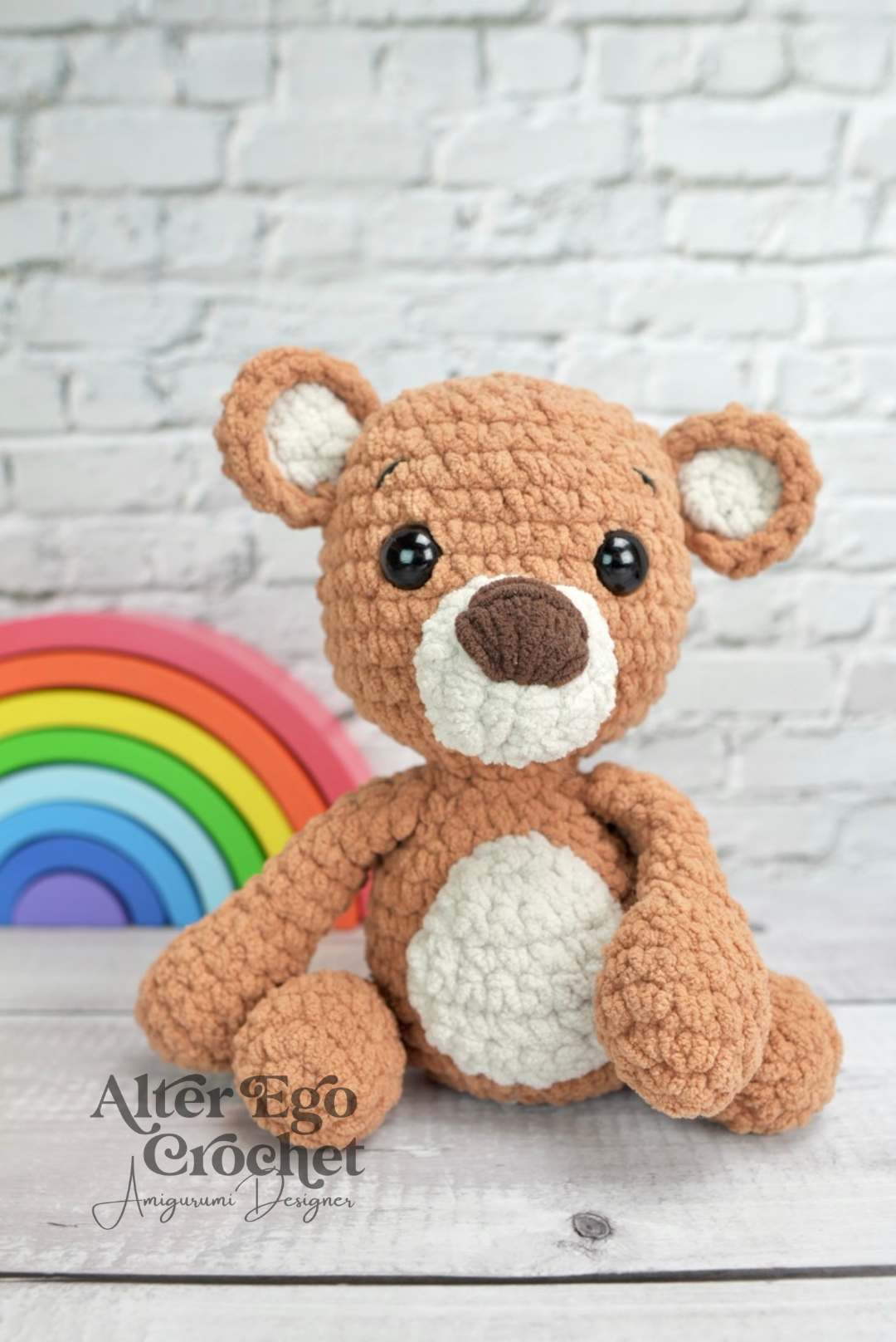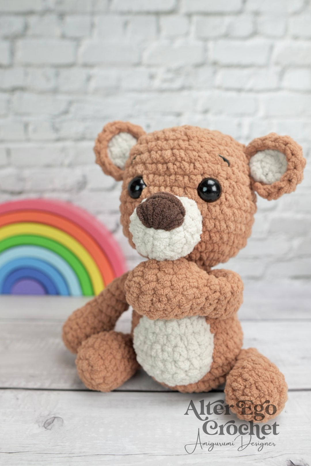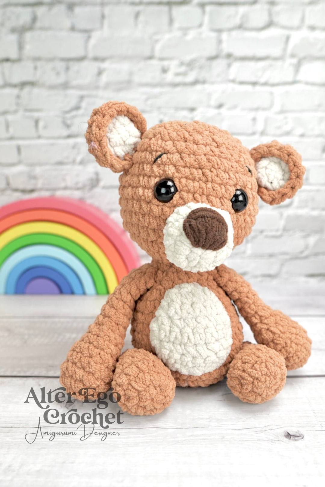 Buddy bliver 19 cm. hvis du bruger samme garn og hæklenål som mig. Du kan sagtens bruge en anden nål og andet garn, hvis han skal være større eller mindre.