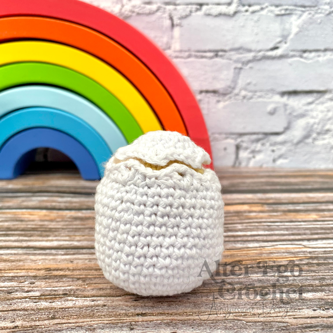 Det meste af opskriften er hæklet sammen - det er kun ægget på hovedet, der er syet på og næbbet er syet med et par sting.