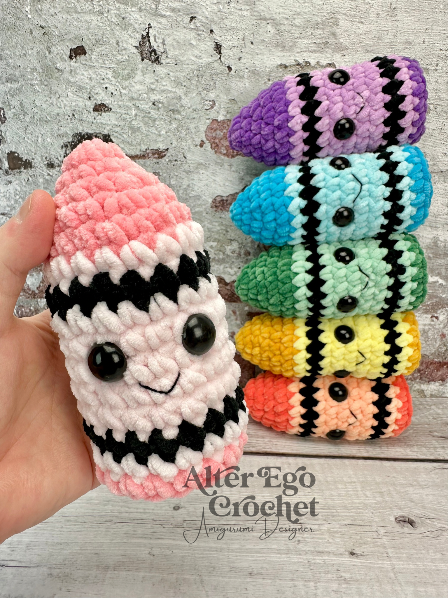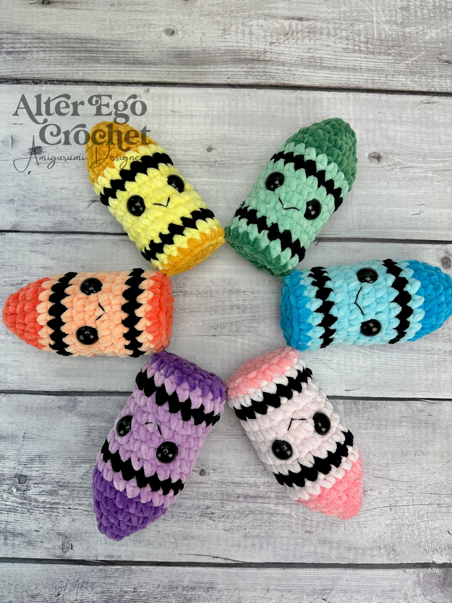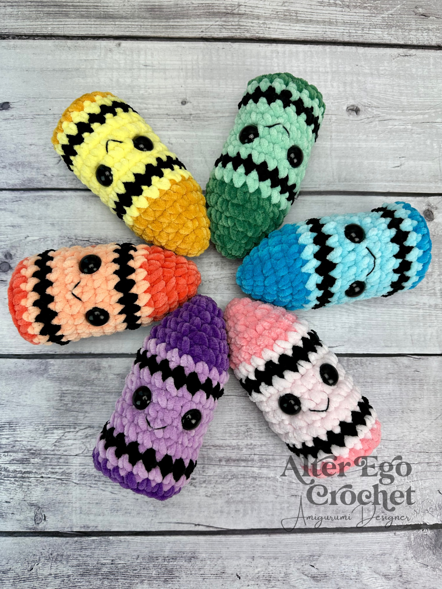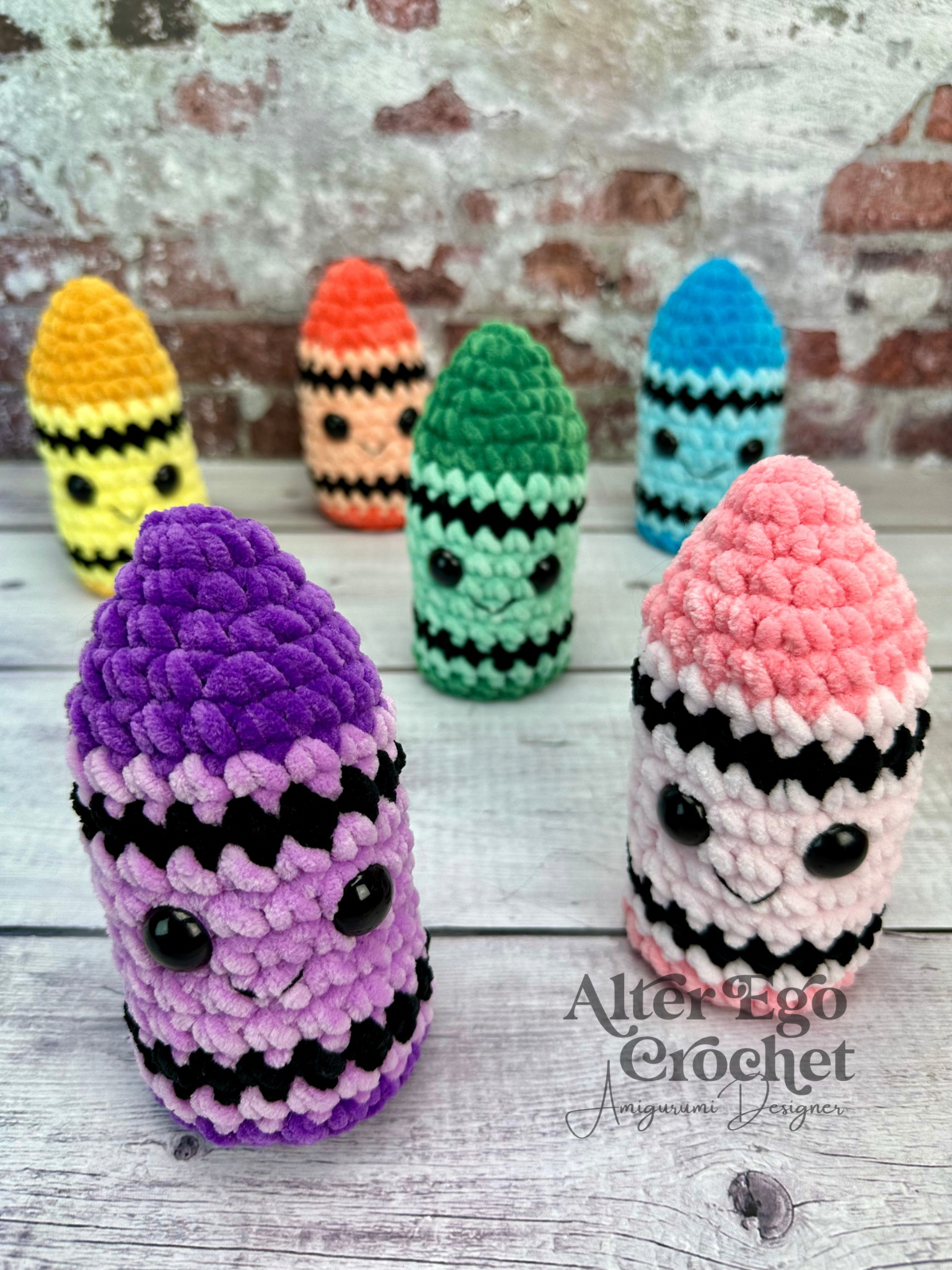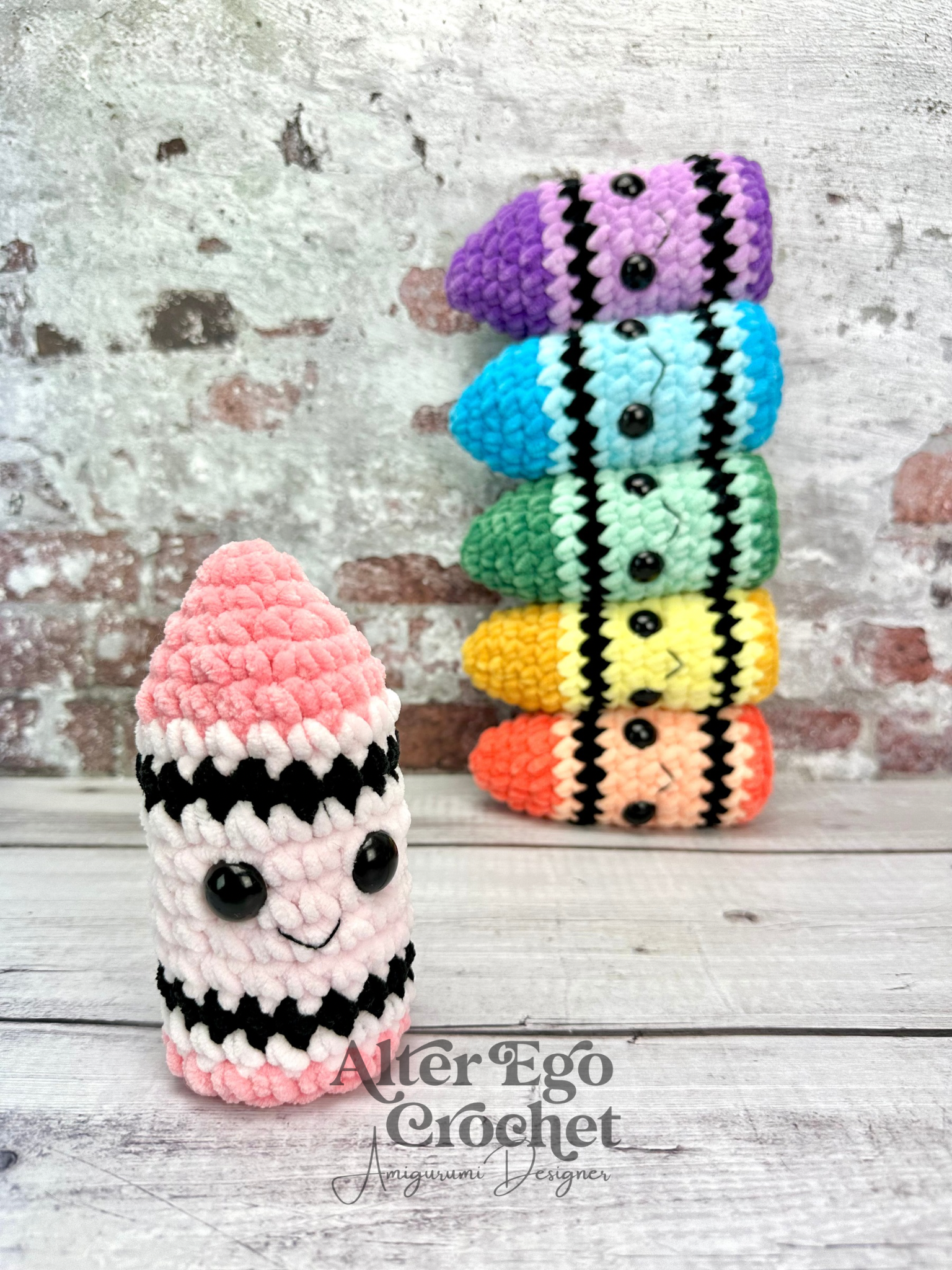 Farvekridtet bliver 14 cm, hvis du bruger samme garn og hæklenål som mig. Du kan bruge andet garn eller hæklenål, hvis den skal være større eller mindre.