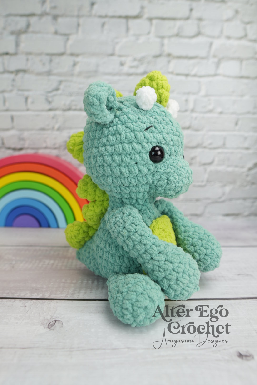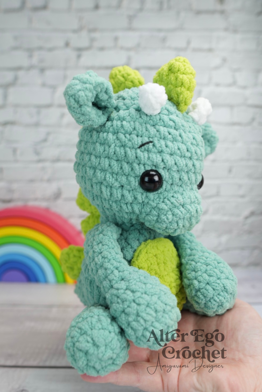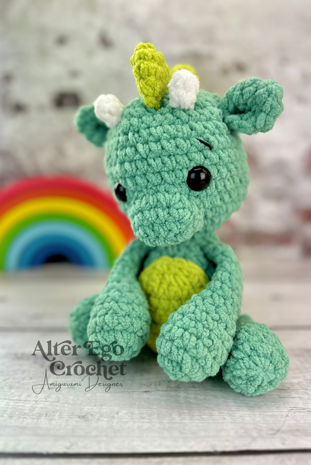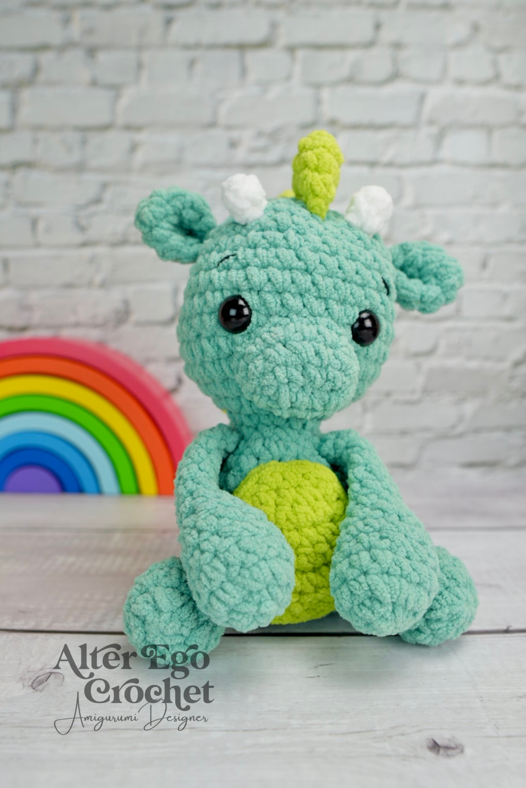 Dorian bliver 19 cm. hvis du bruger samme garn og hæklenål som mig. Du kan sagtens bruge en anden nål og andet garn, hvis han skal være større eller mindre.