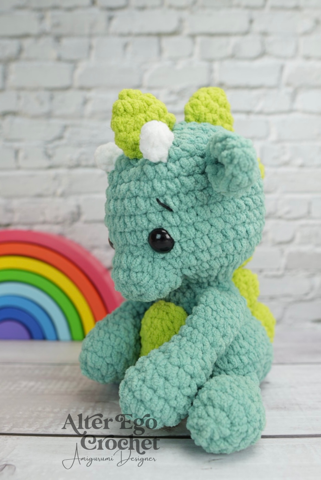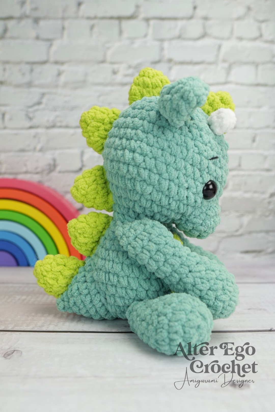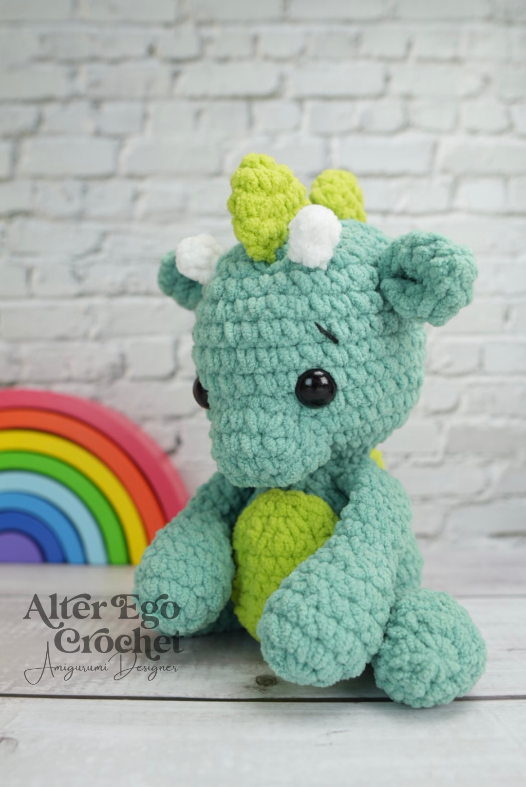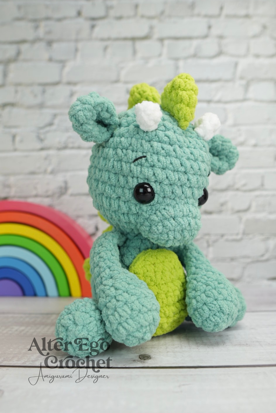 Dorian bliver 19 cm. hvis du bruger samme garn og hæklenål som mig. Du kan sagtens bruge en anden nål og andet garn, hvis han skal være større eller mindre.