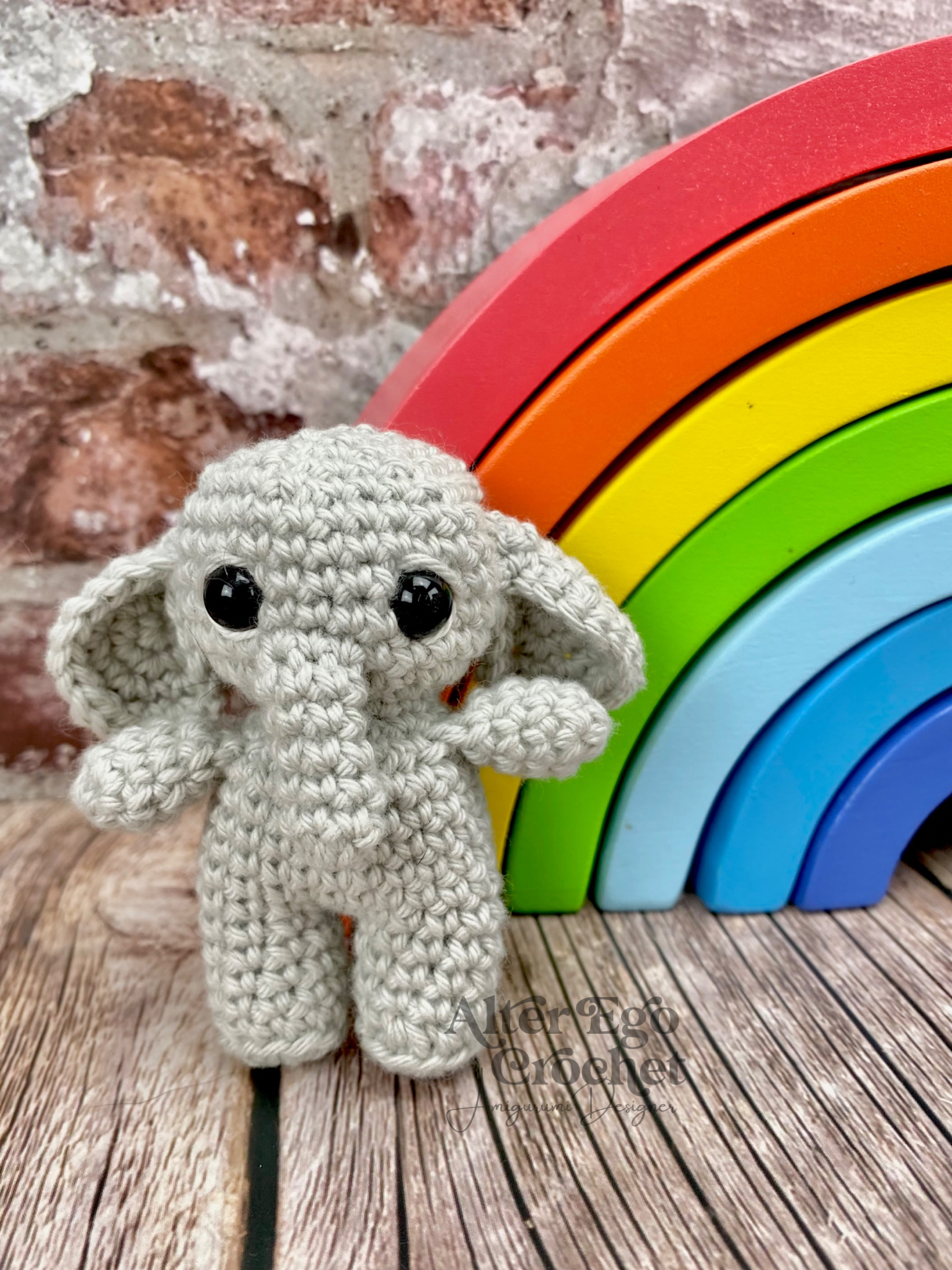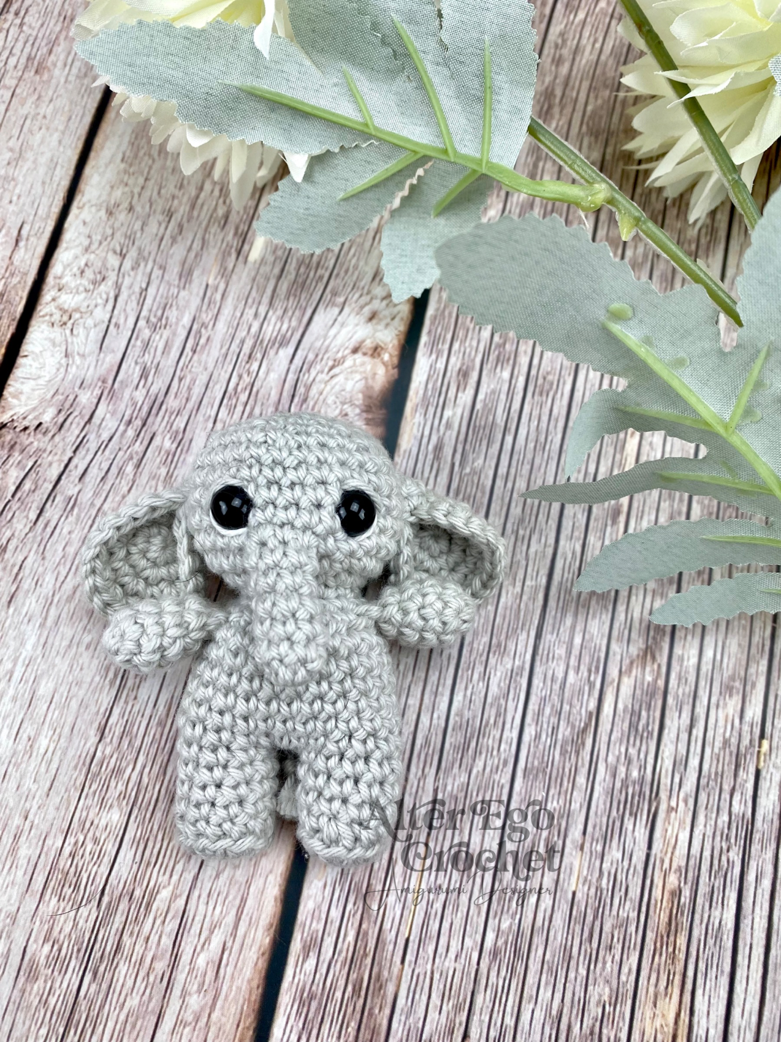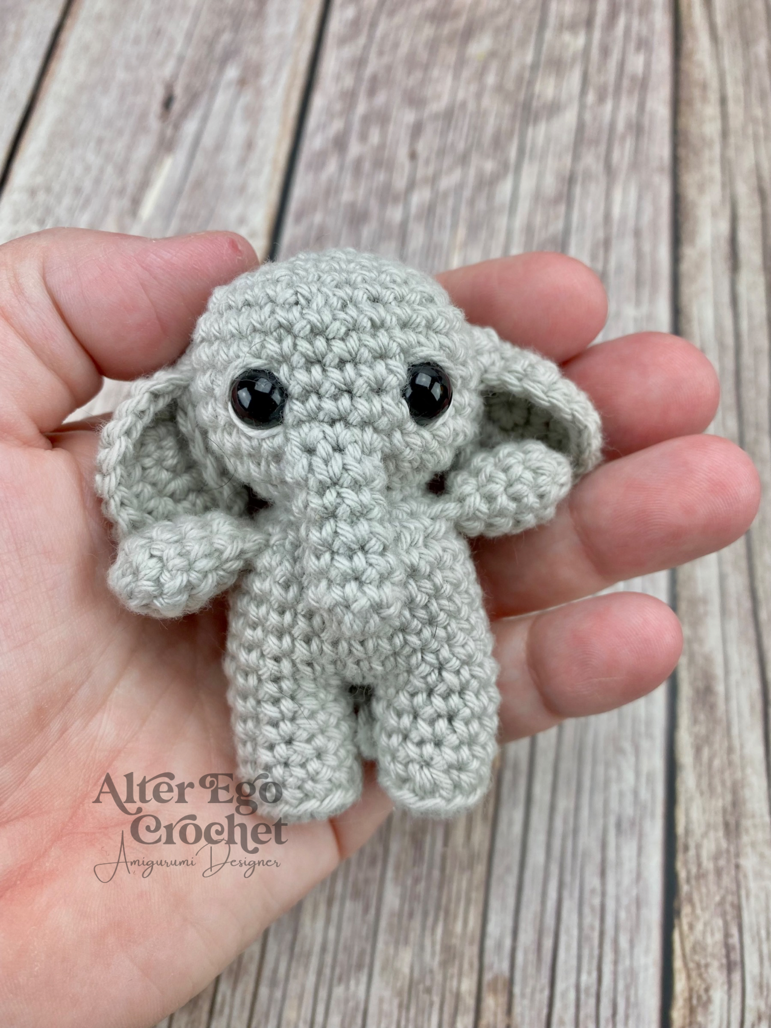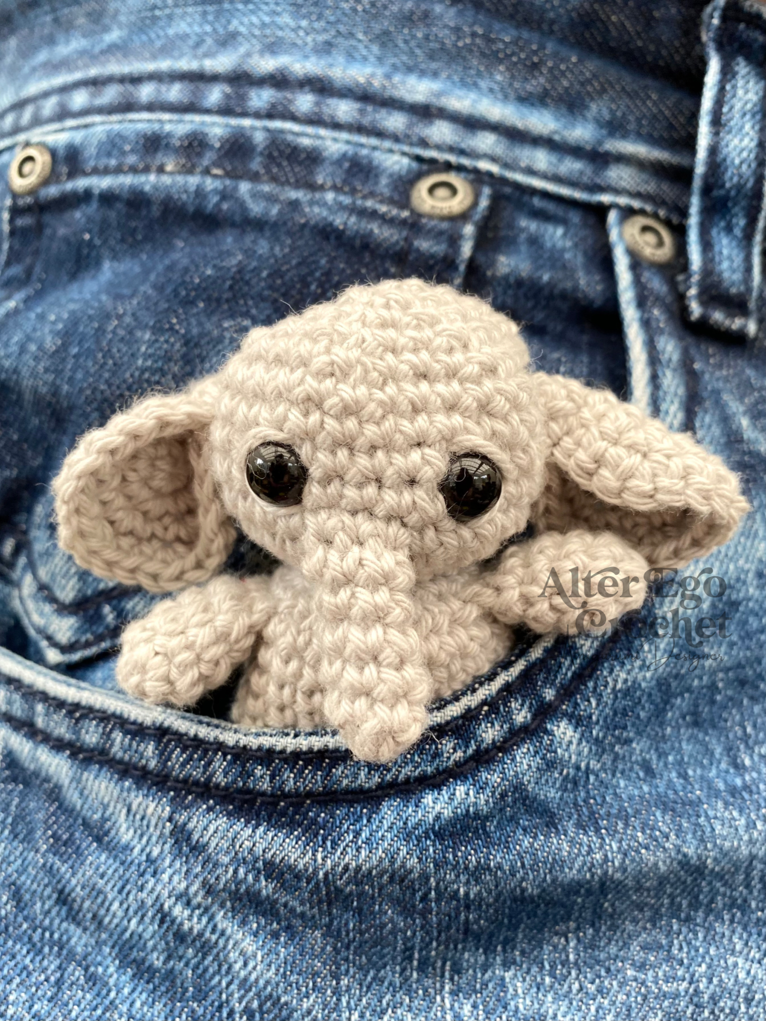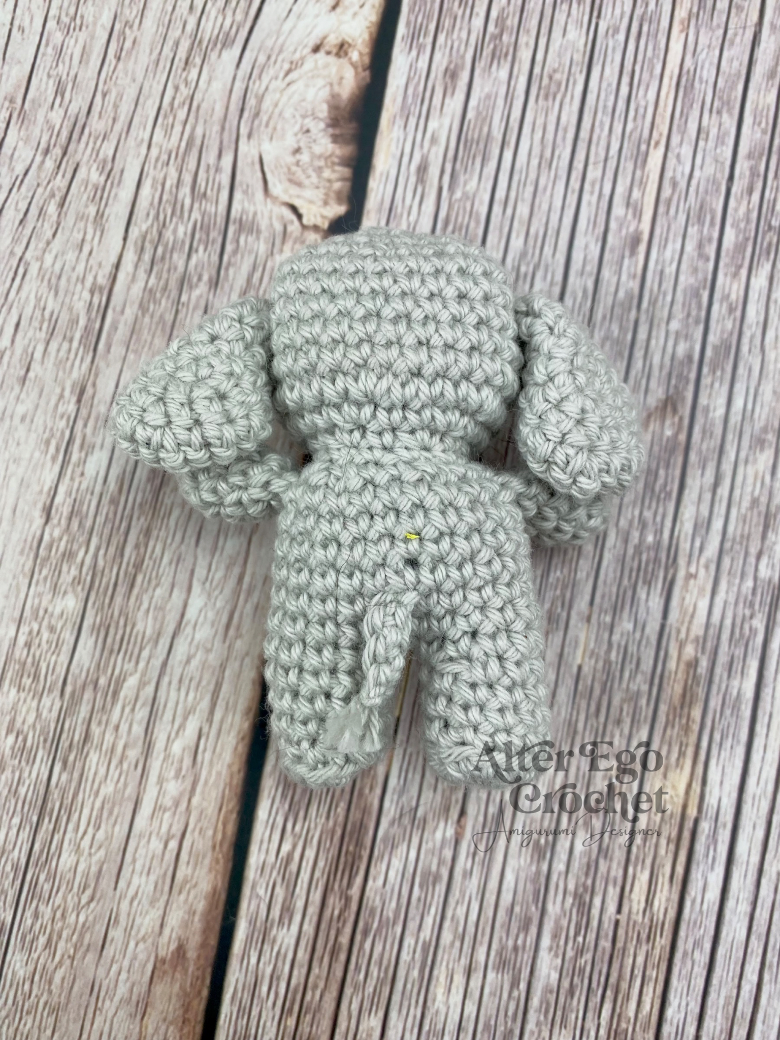 Ben, arme, snabel og krop er hæklet sammen, så det er kun ører og hale, der skal monteres.