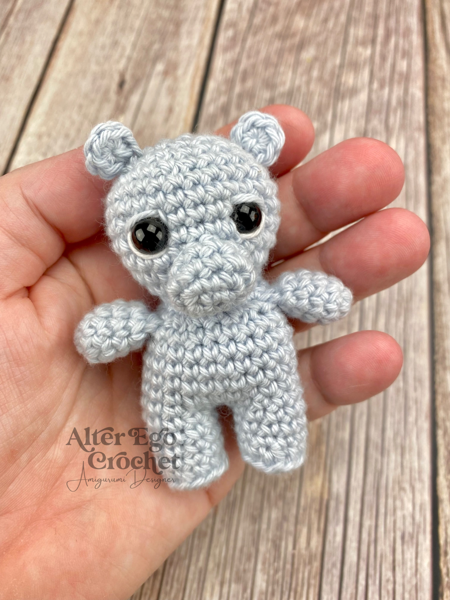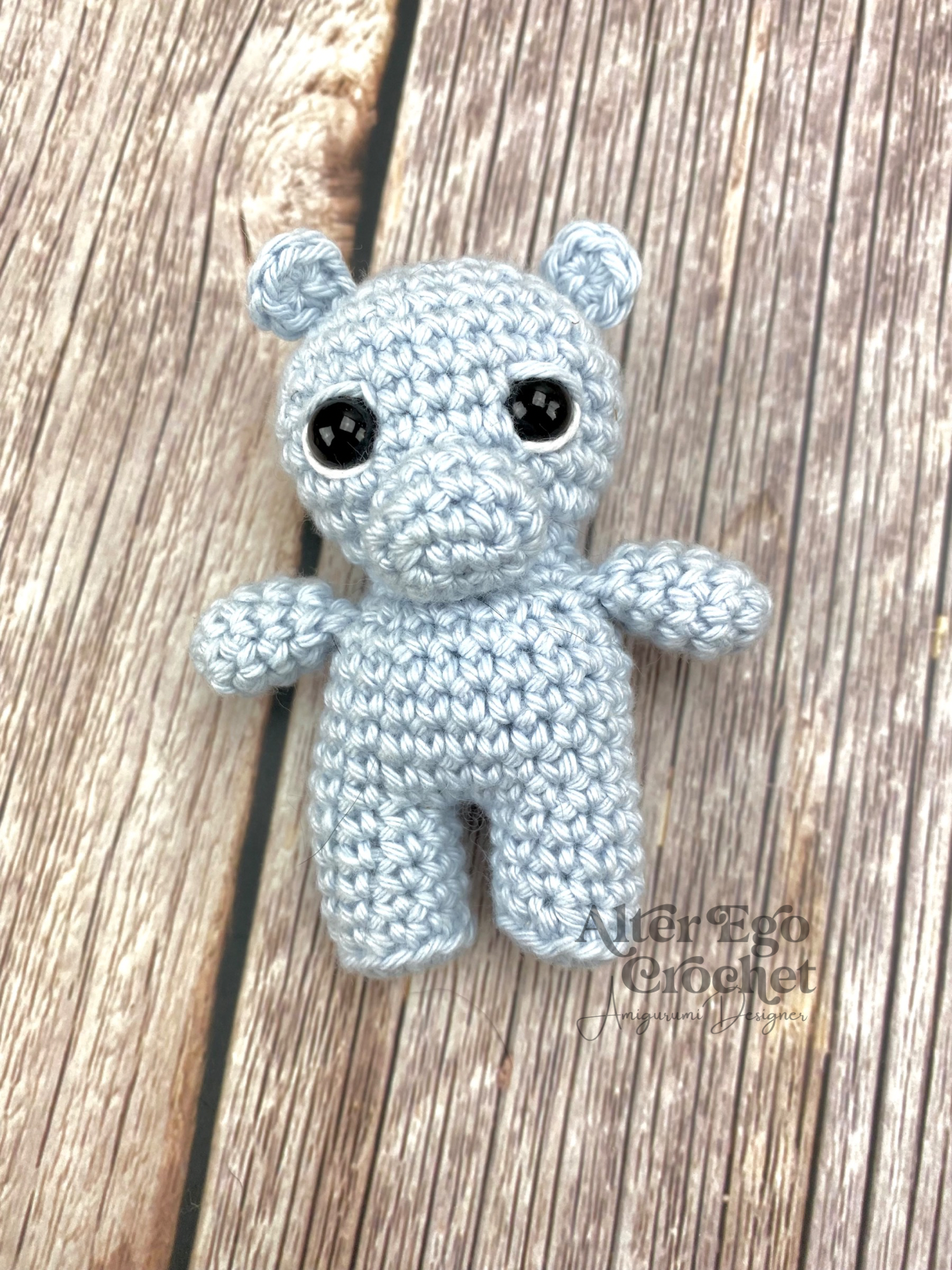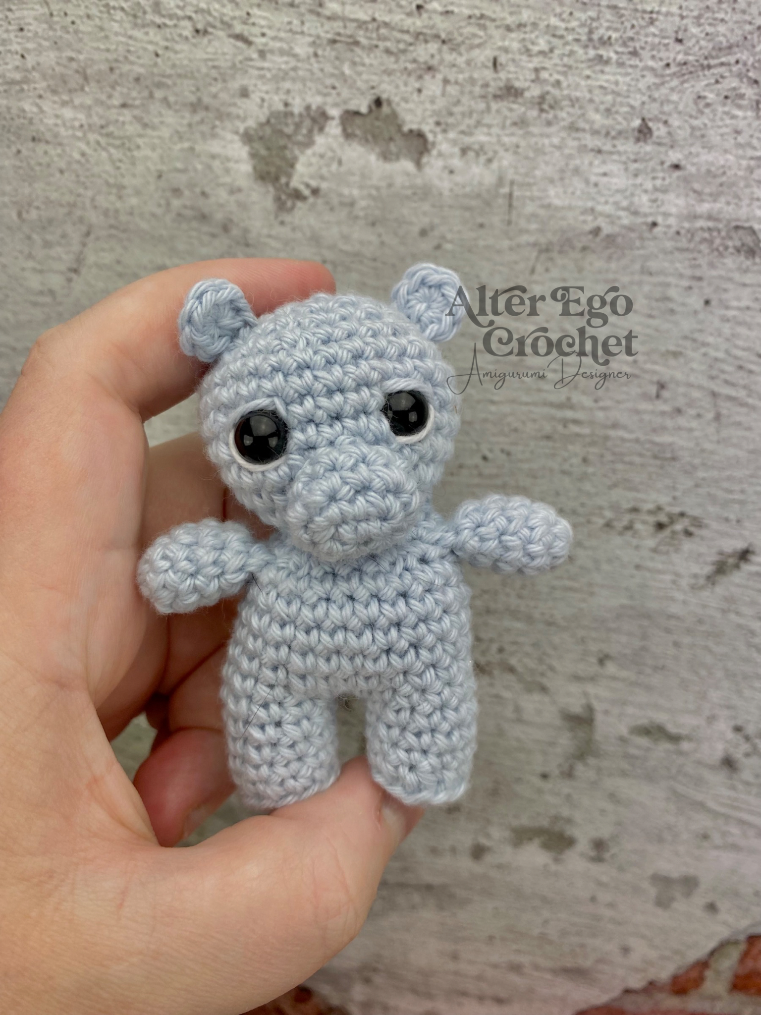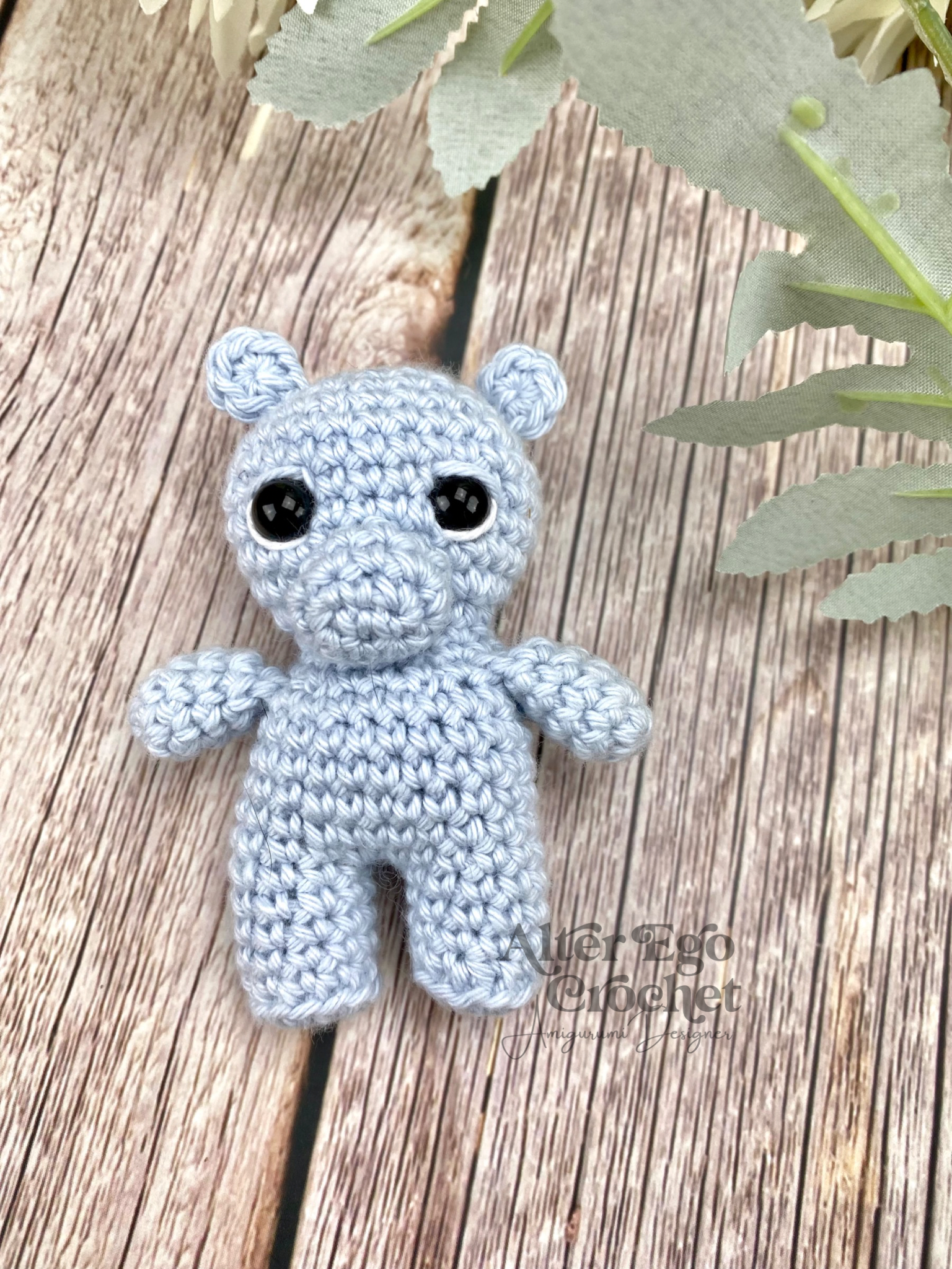 Helga bliver 8 cm hvis du bruger samme garn og hæklenål som mig. Du kan bruge andet garn eller hæklenål, hvis han skal være større eller mindre.