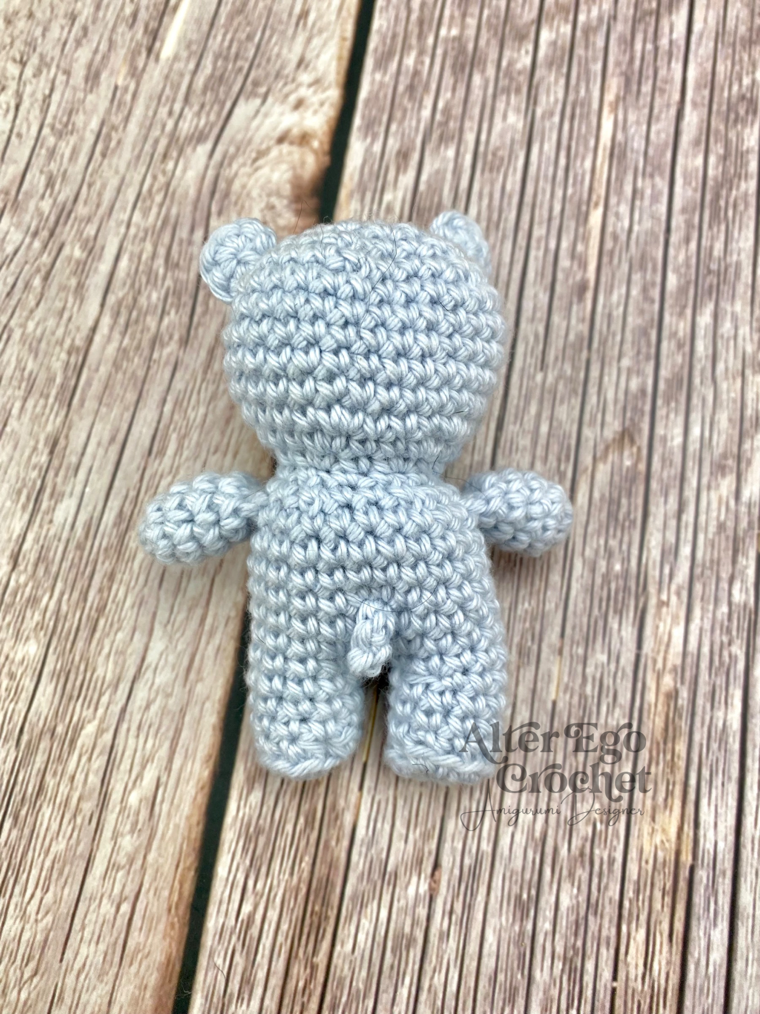 Ben, arme og krop er hæklet sammen, så det er kun ører, snude og hale, der skal monteres.