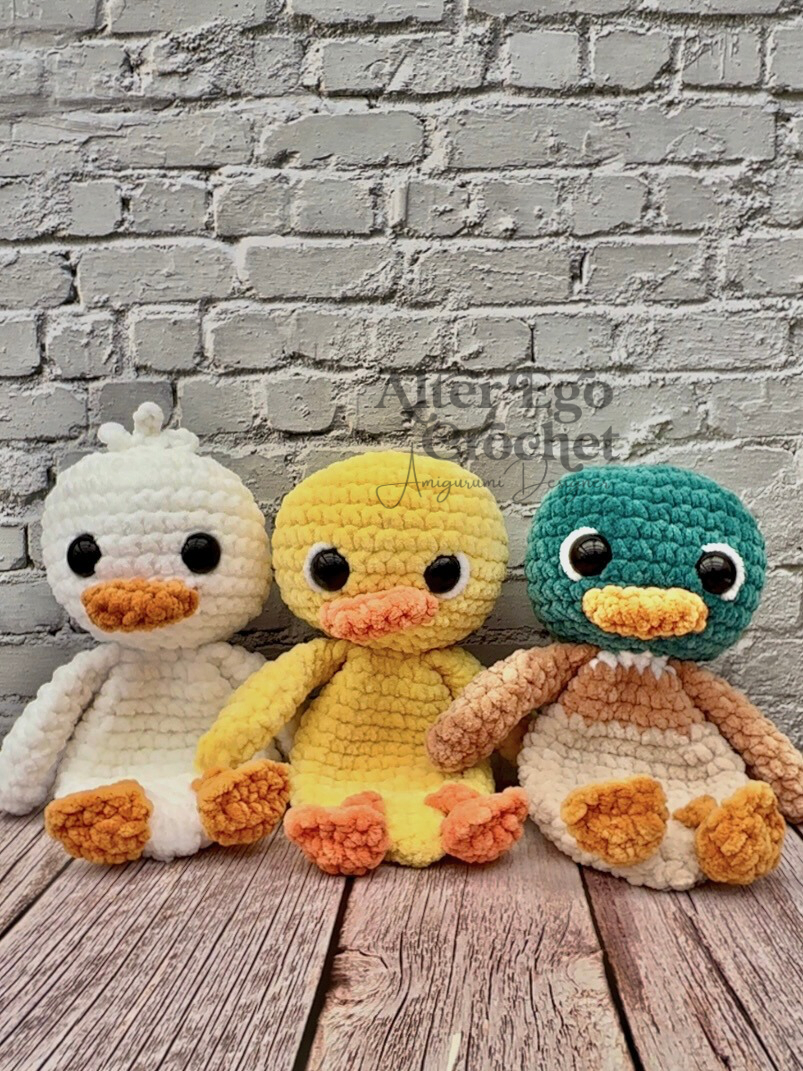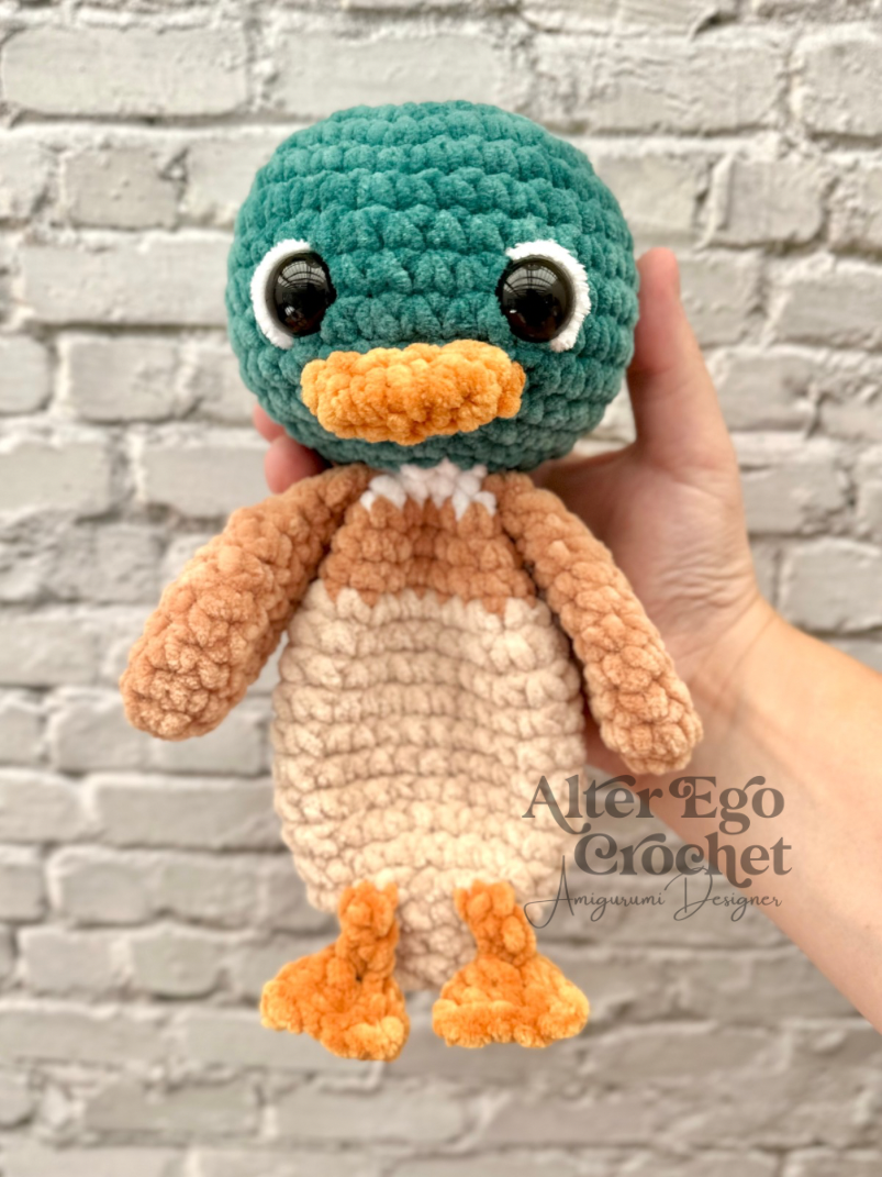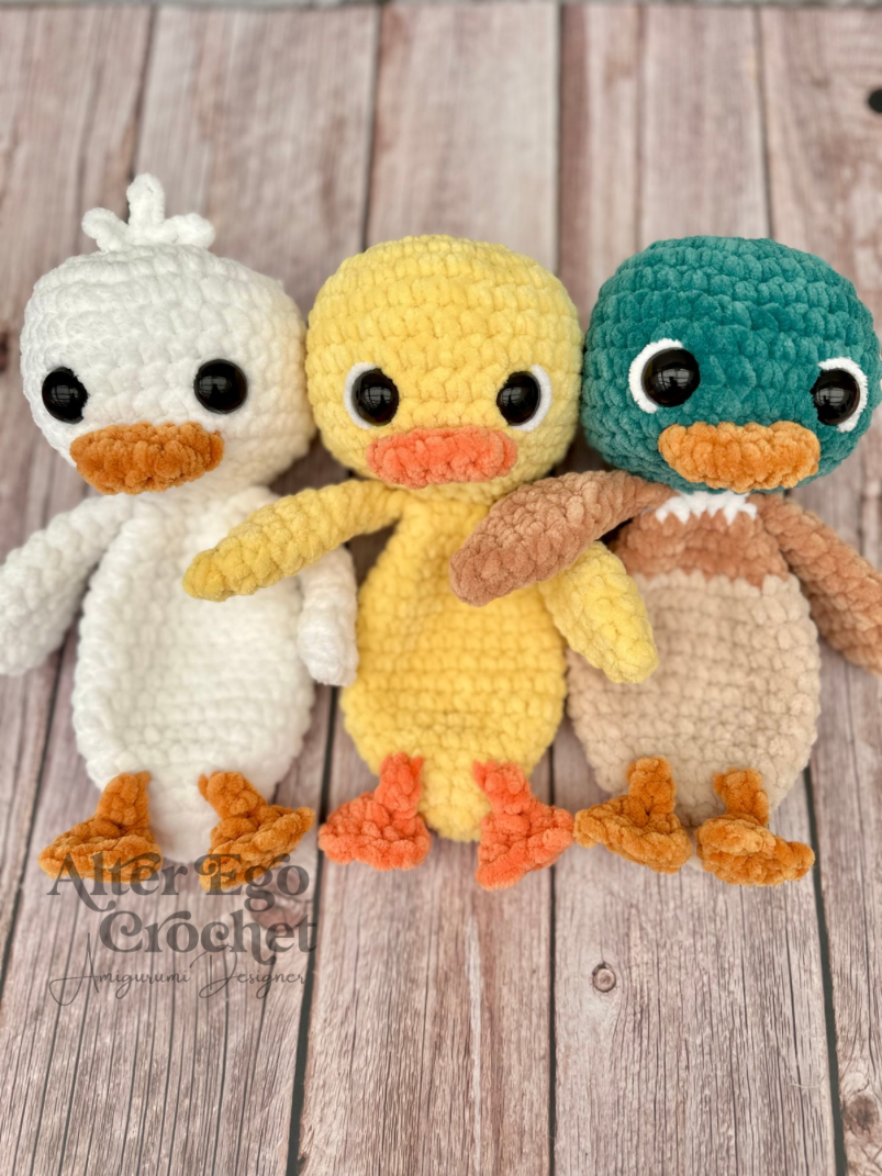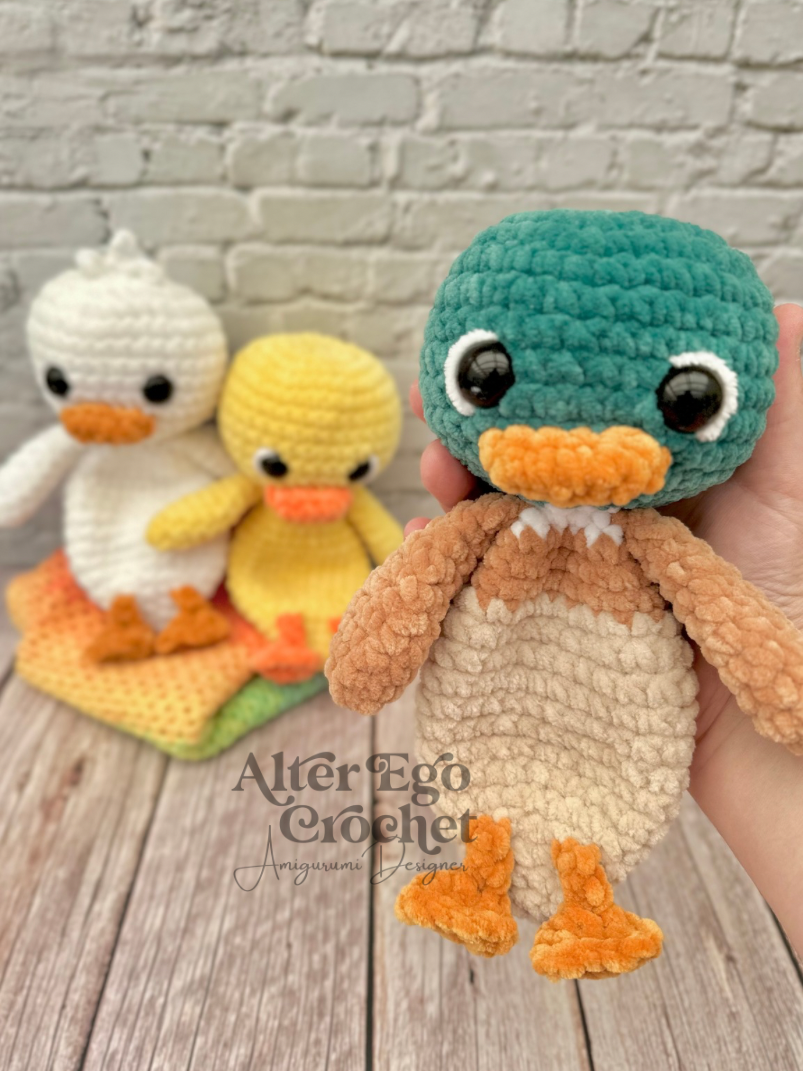 Ænderne bliver 23 cm, hvis du bruger samme garn og hæklenål som mig. Du kan sagtens bruge en anden nål og andet garn, hvis den skal være større eller mindre.