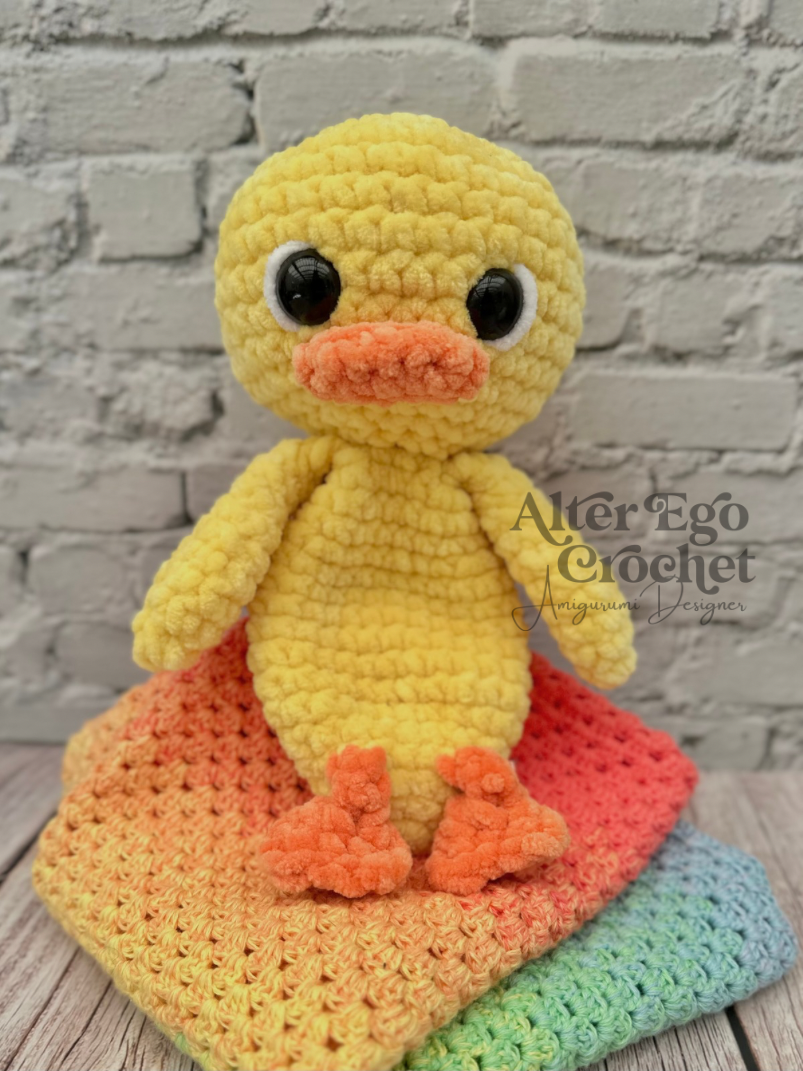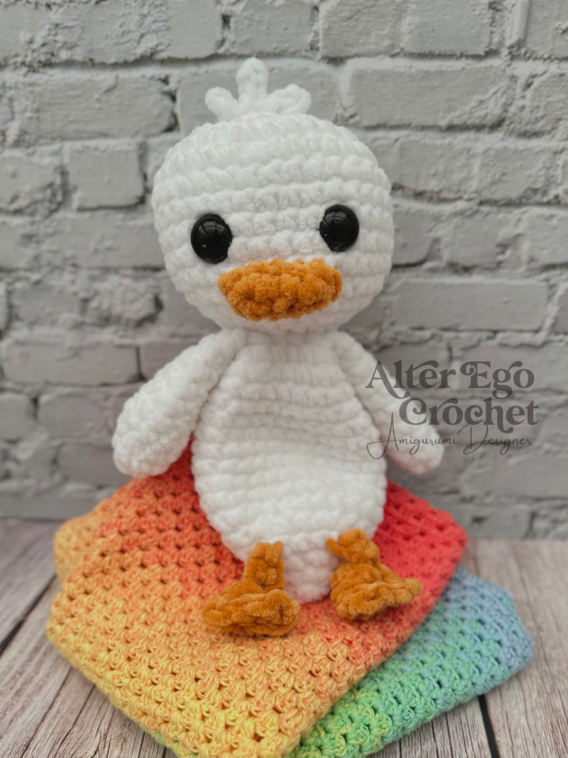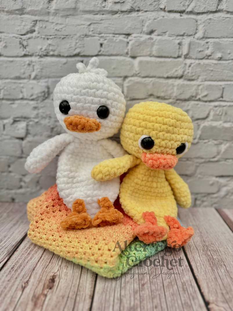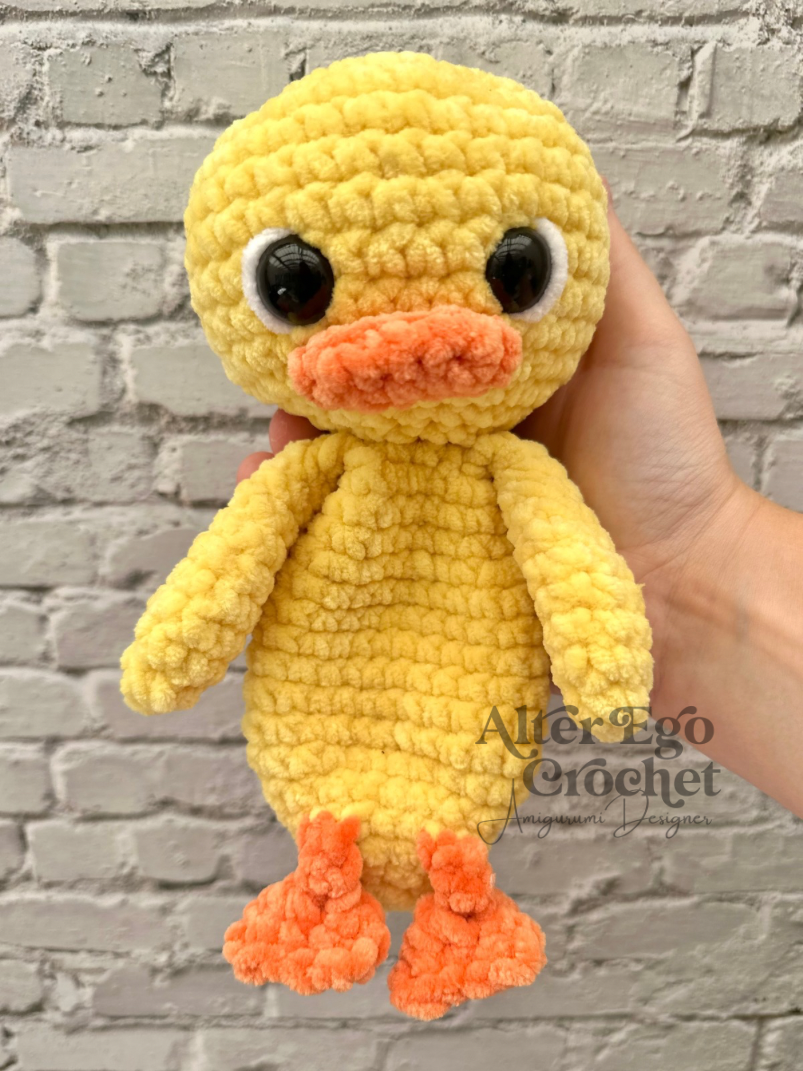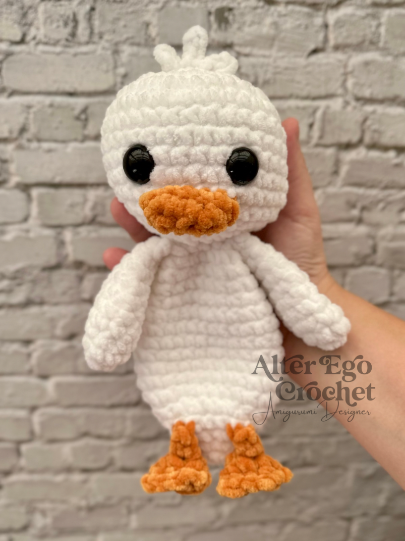 Ænderne bliver 23 cm, hvis du bruger samme garn og hæklenål som mig. Du kan sagtens bruge en anden nål og andet garn, hvis den skal være større eller mindre.