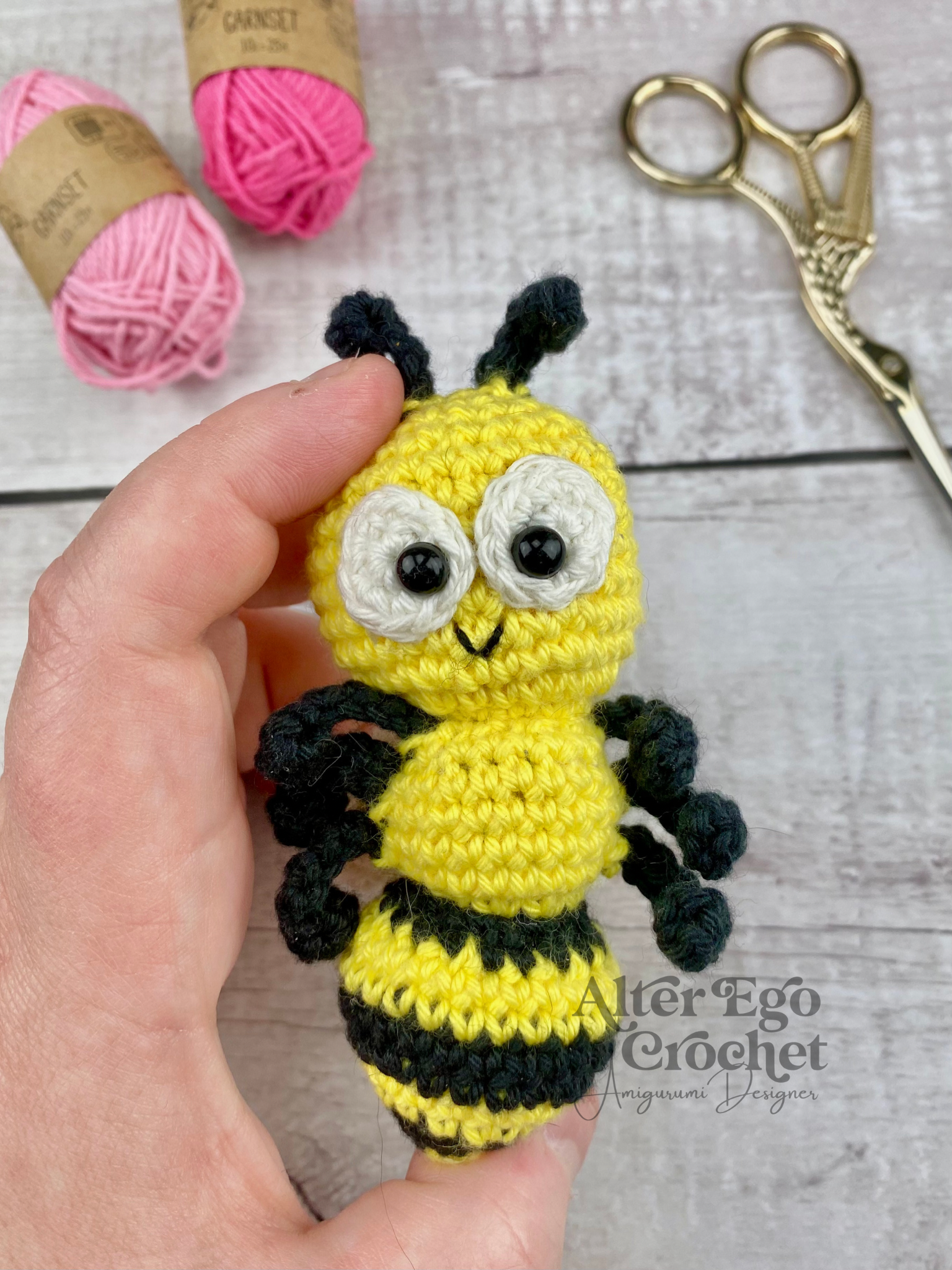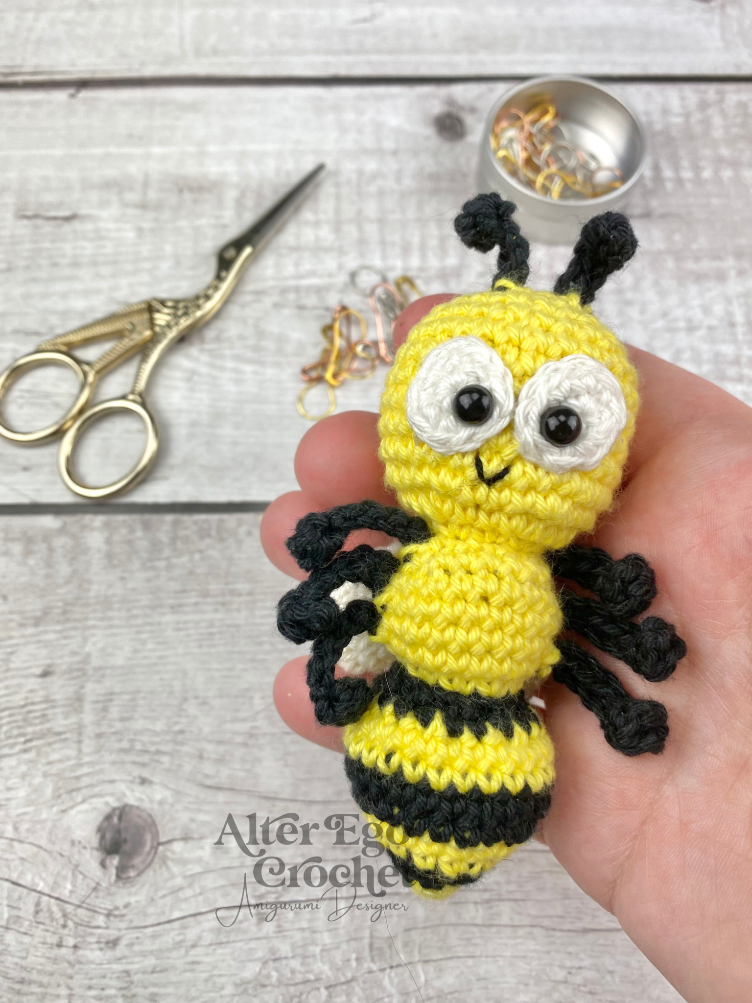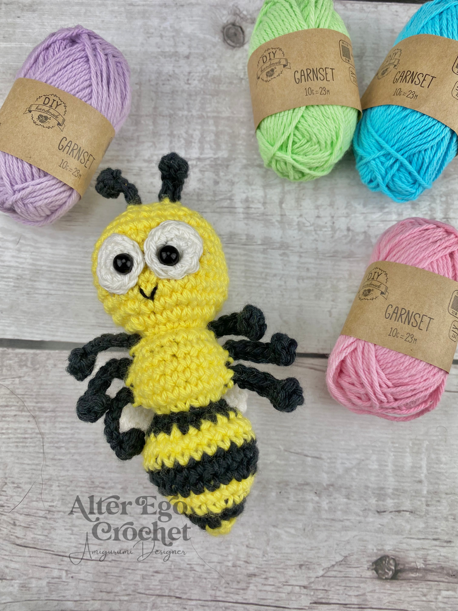 Wilson bliver 11 cm. hvis du bruger samme garn og hæklenål som mig. Du kan sagtens bruge en anden nål og andet garn, hvis han skal være større eller mindre.
