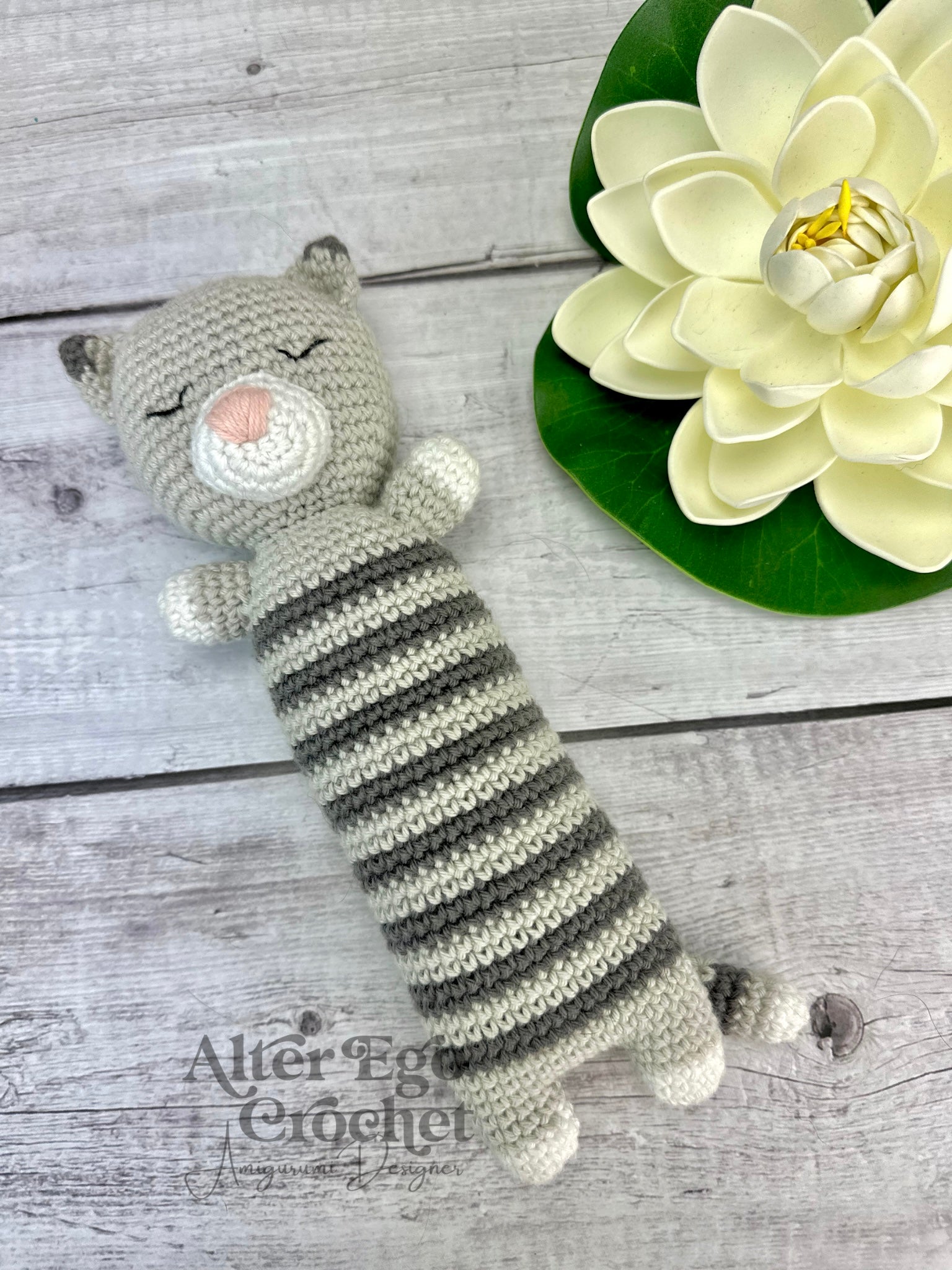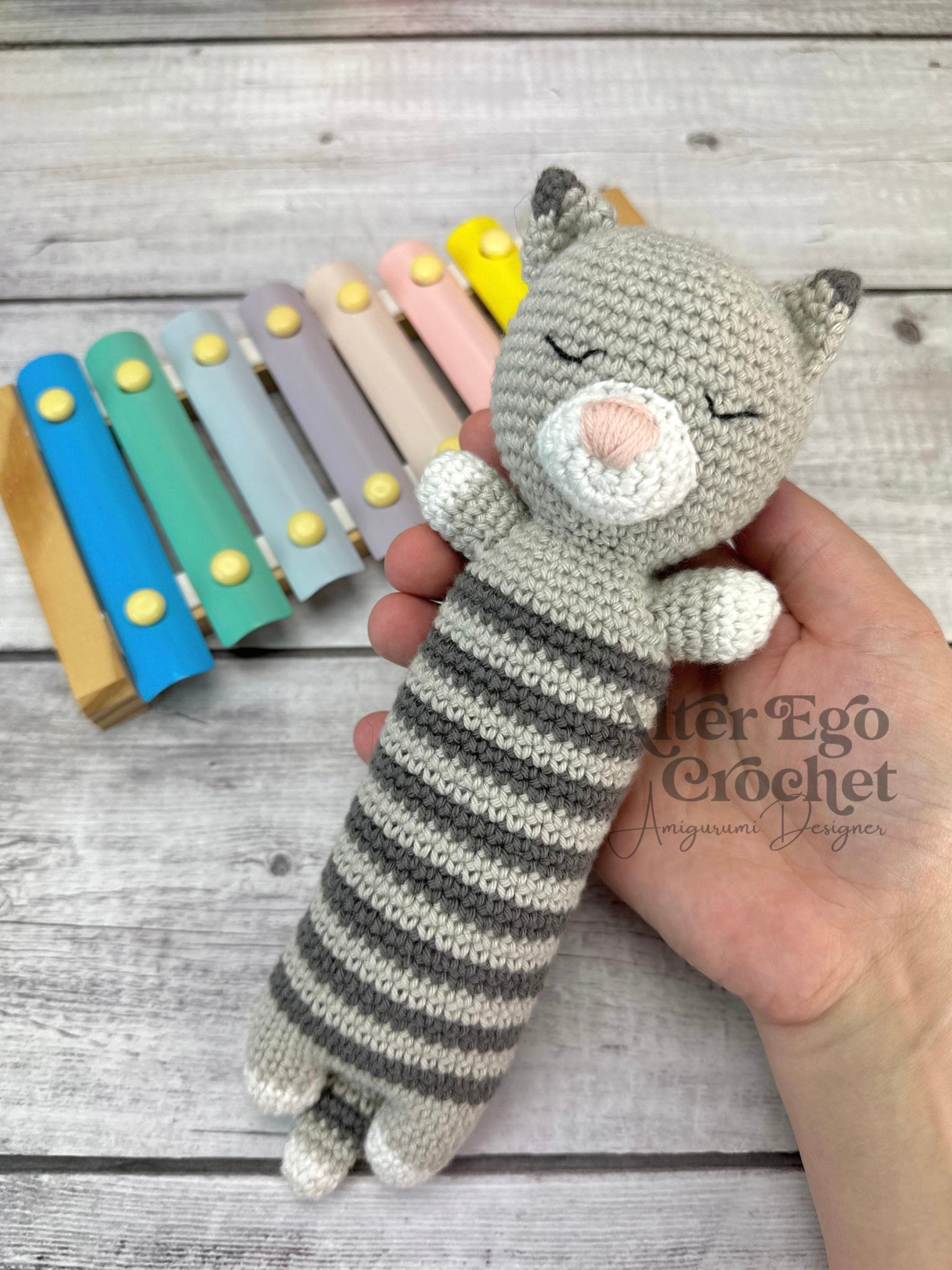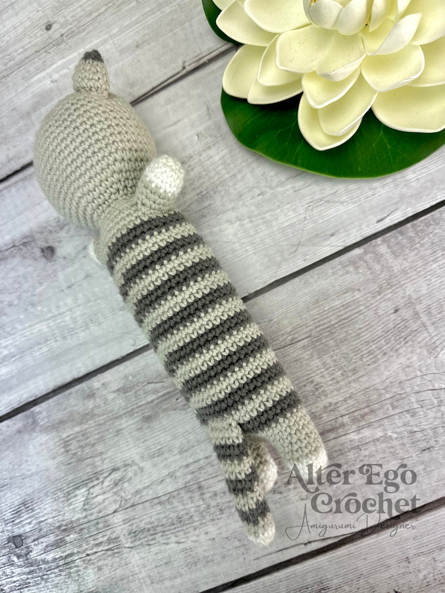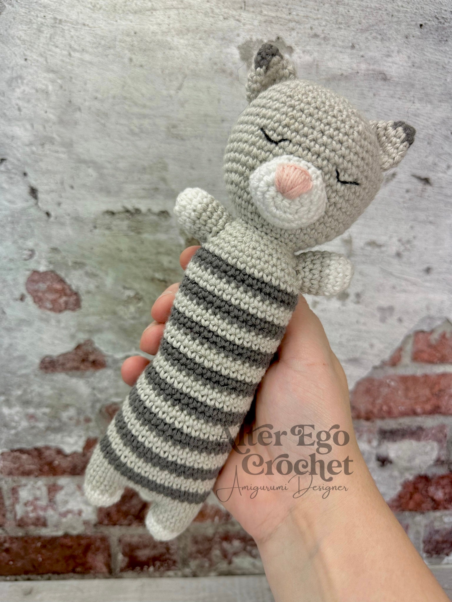 Cathrine bliver 23 cm. hvis du bruger samme garn og hæklenål som mig. Du kan sagtens bruge en anden nål og andet garn, hvis han skal være større eller mindre.