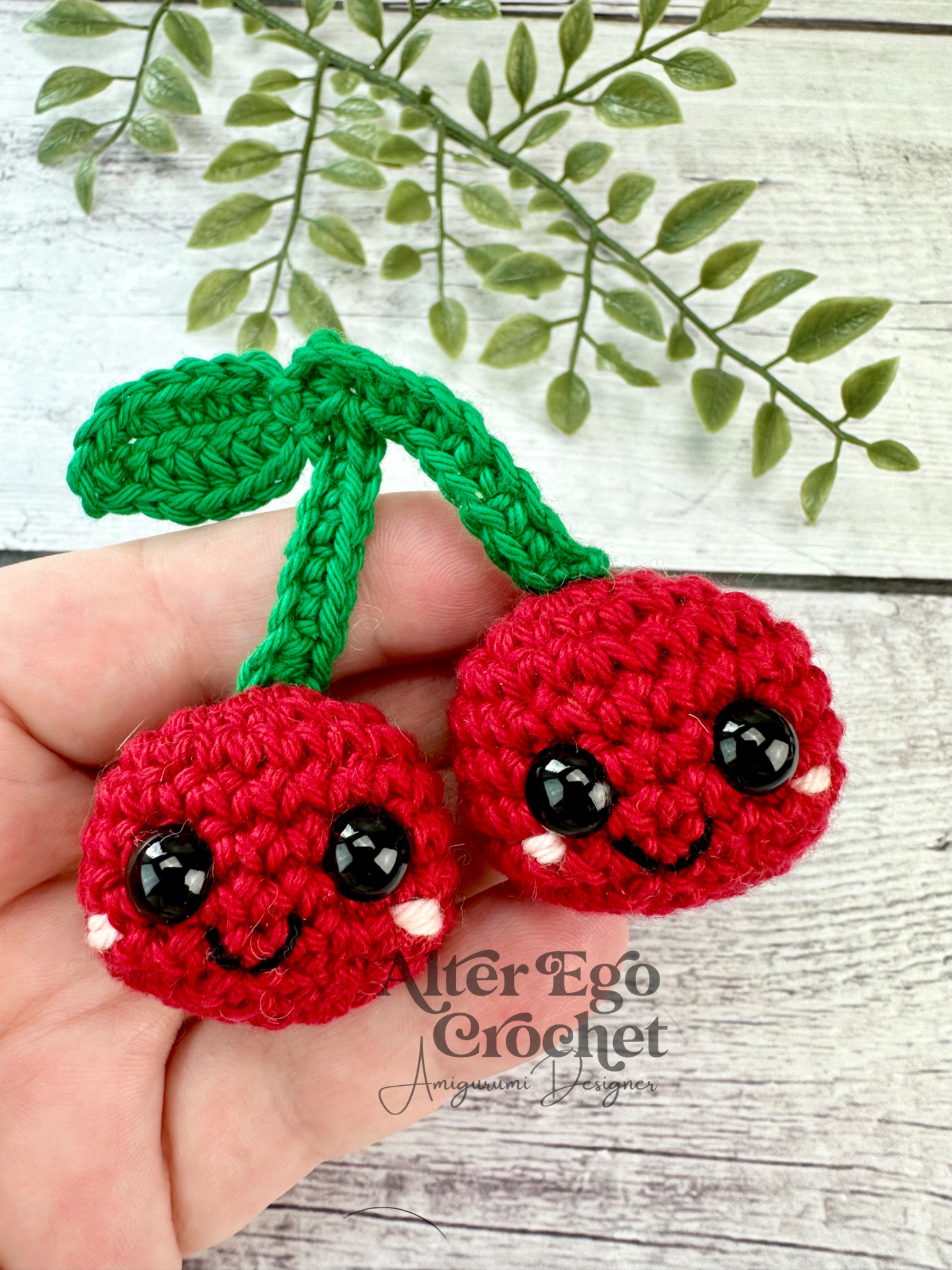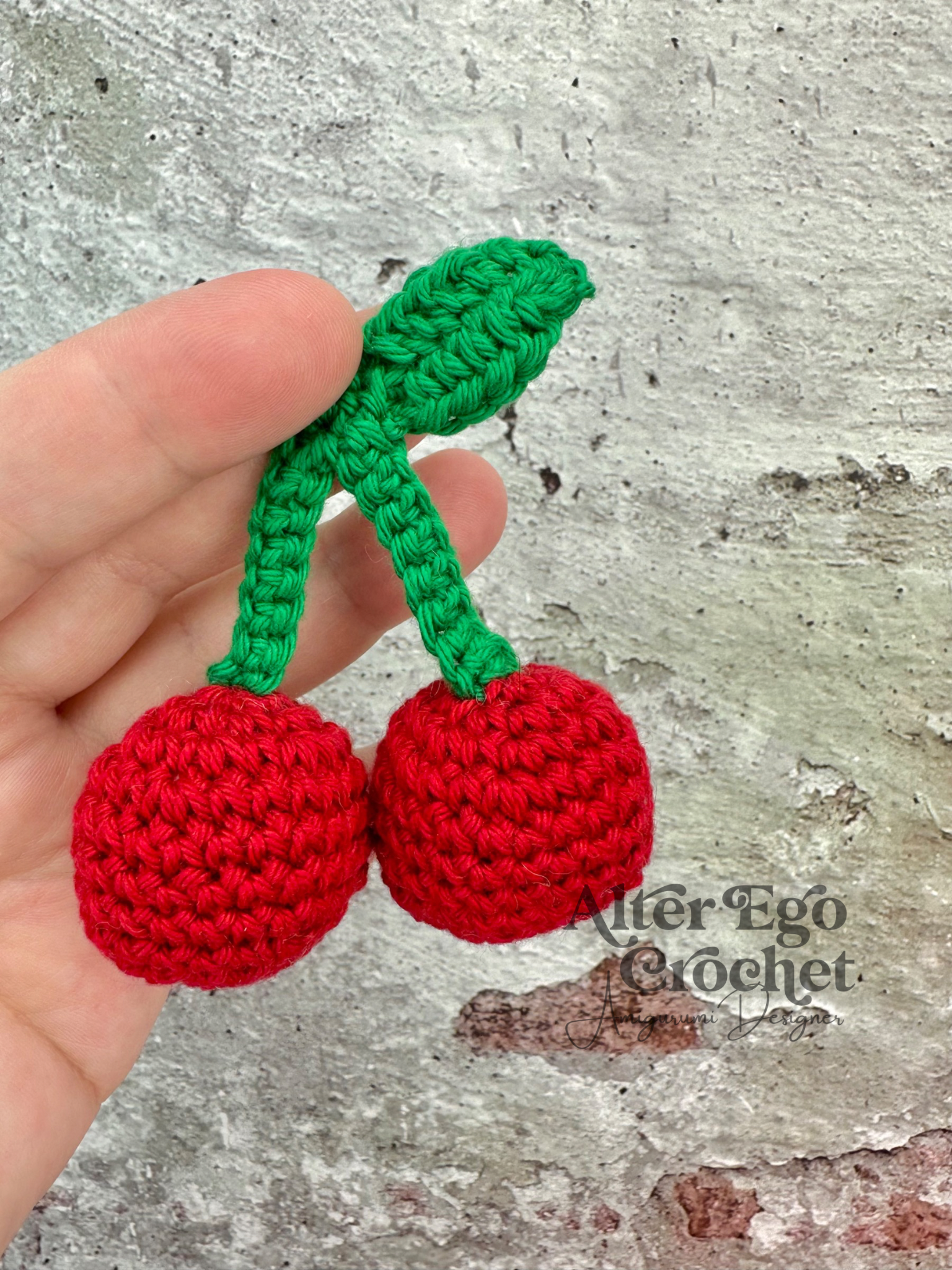 - Garn: Jeg har brugt 8/4 bomuld (5 g rød, 2 g grøn og lidt lyserød)