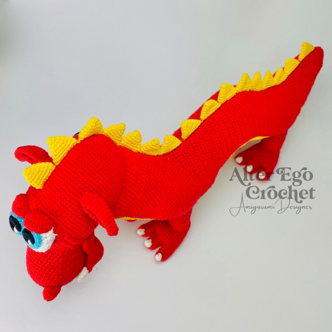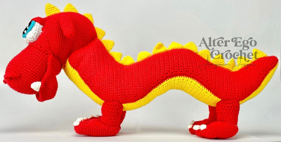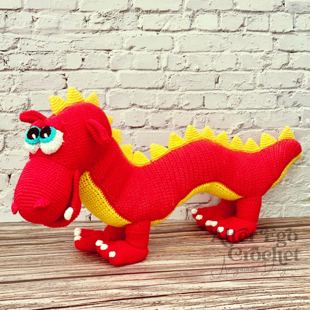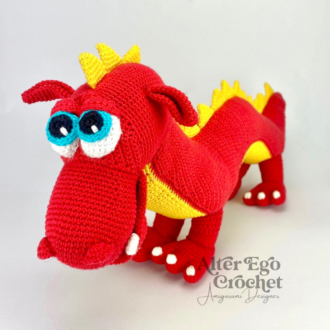 Hubert vil blive 28 x 54 cm. hvis du bruger samme garn og hæklenål som mig. Du kan sagtens bruge en anden nål og andet garn, hvis han skal være større eller mindre.