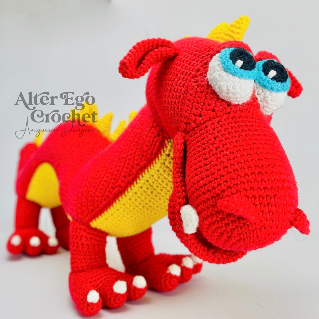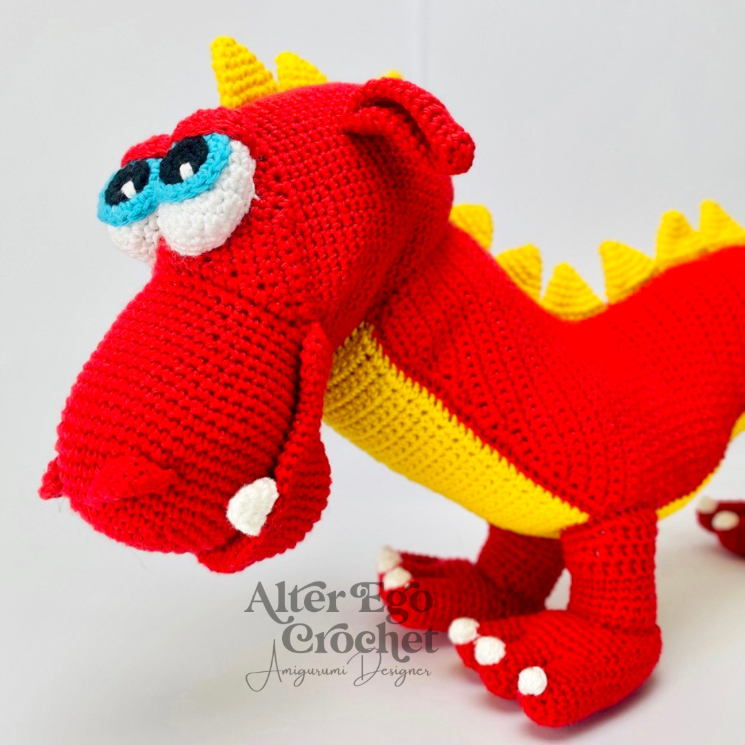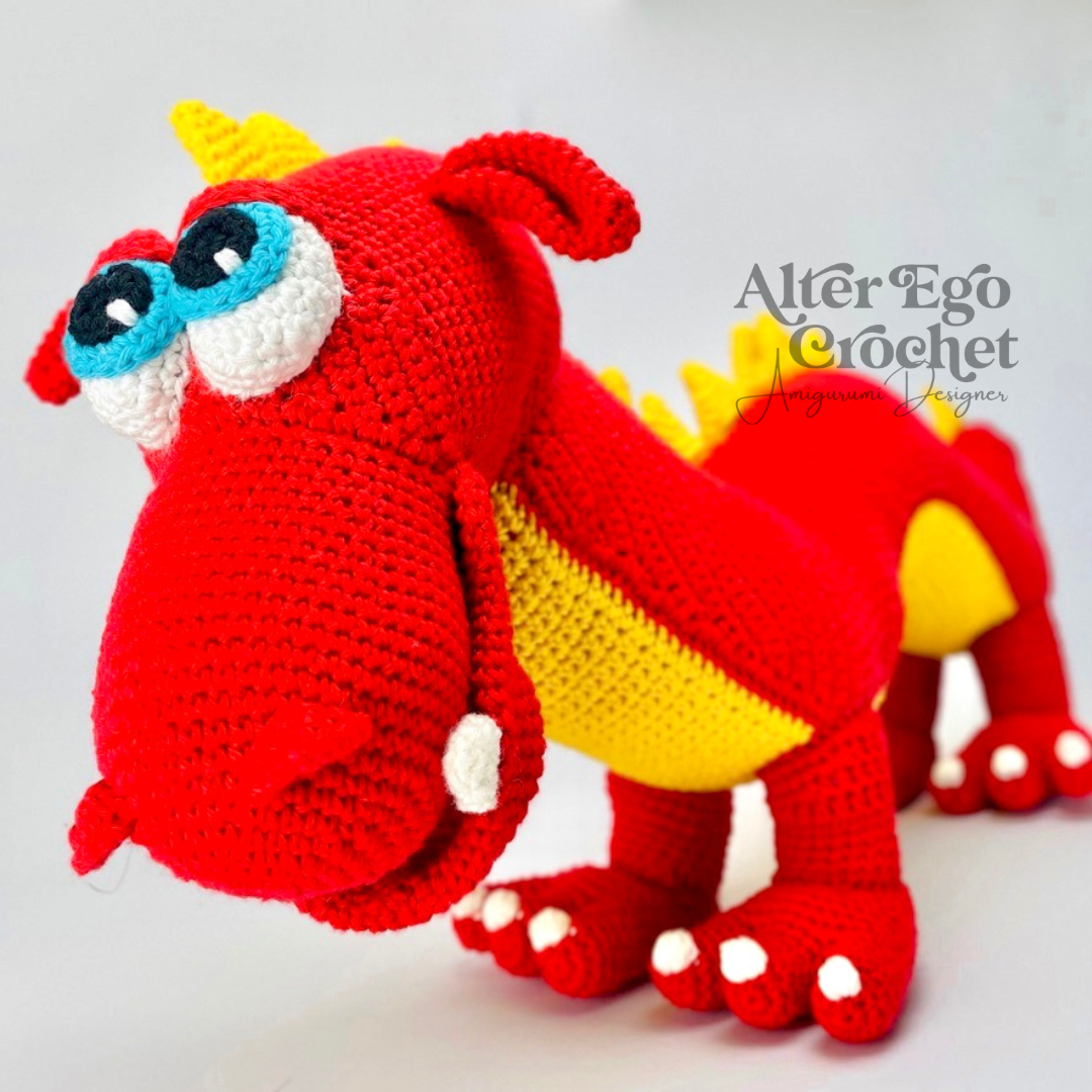 Hubert vil blive 28 x 54 cm. hvis du bruger samme garn og hæklenål som mig. Du kan sagtens bruge en anden nål og andet garn, hvis han skal være større eller mindre.