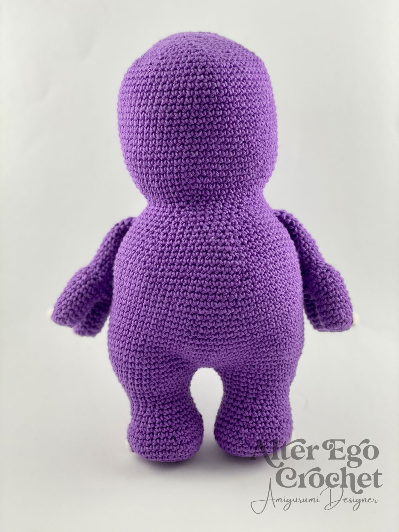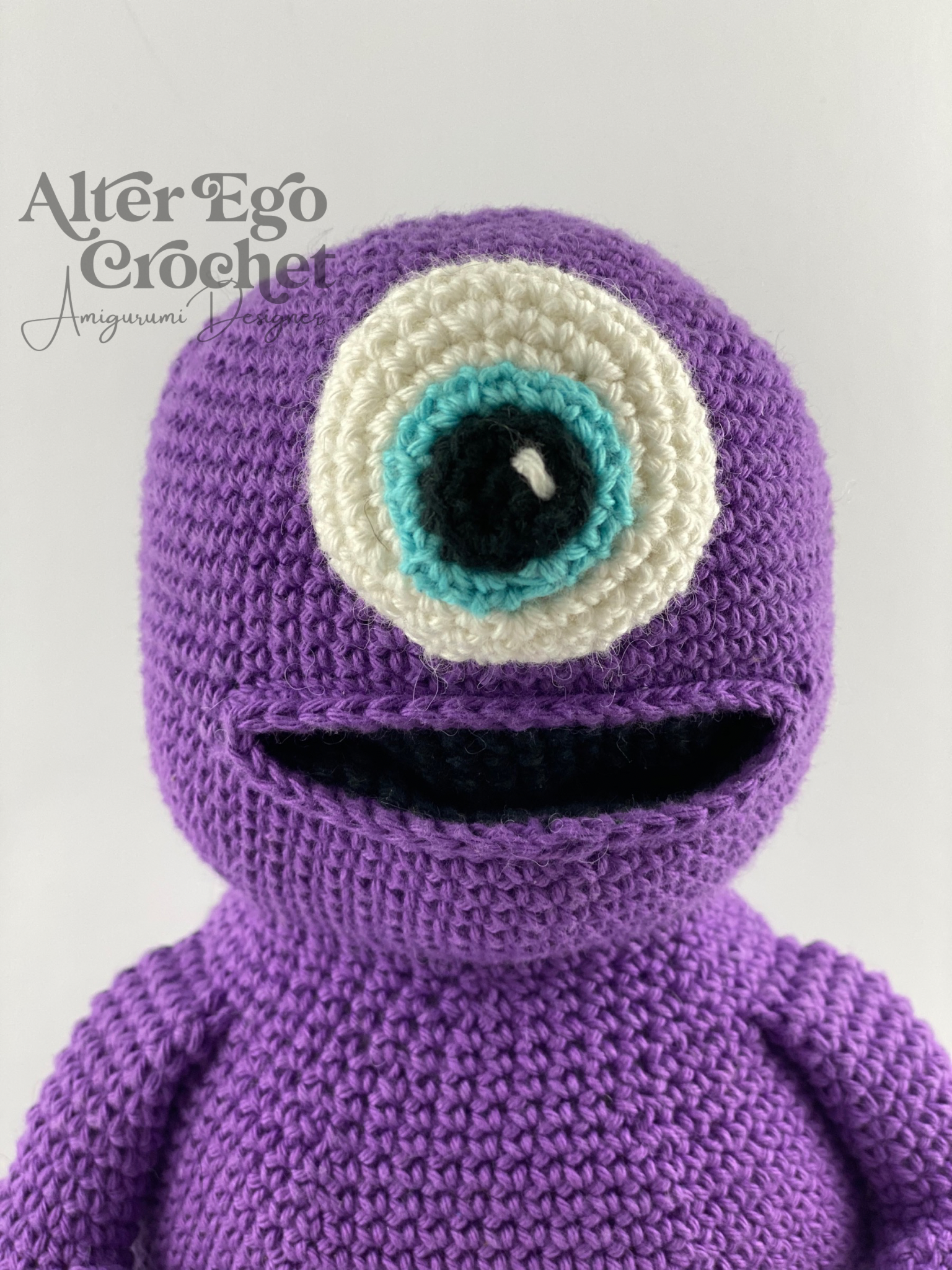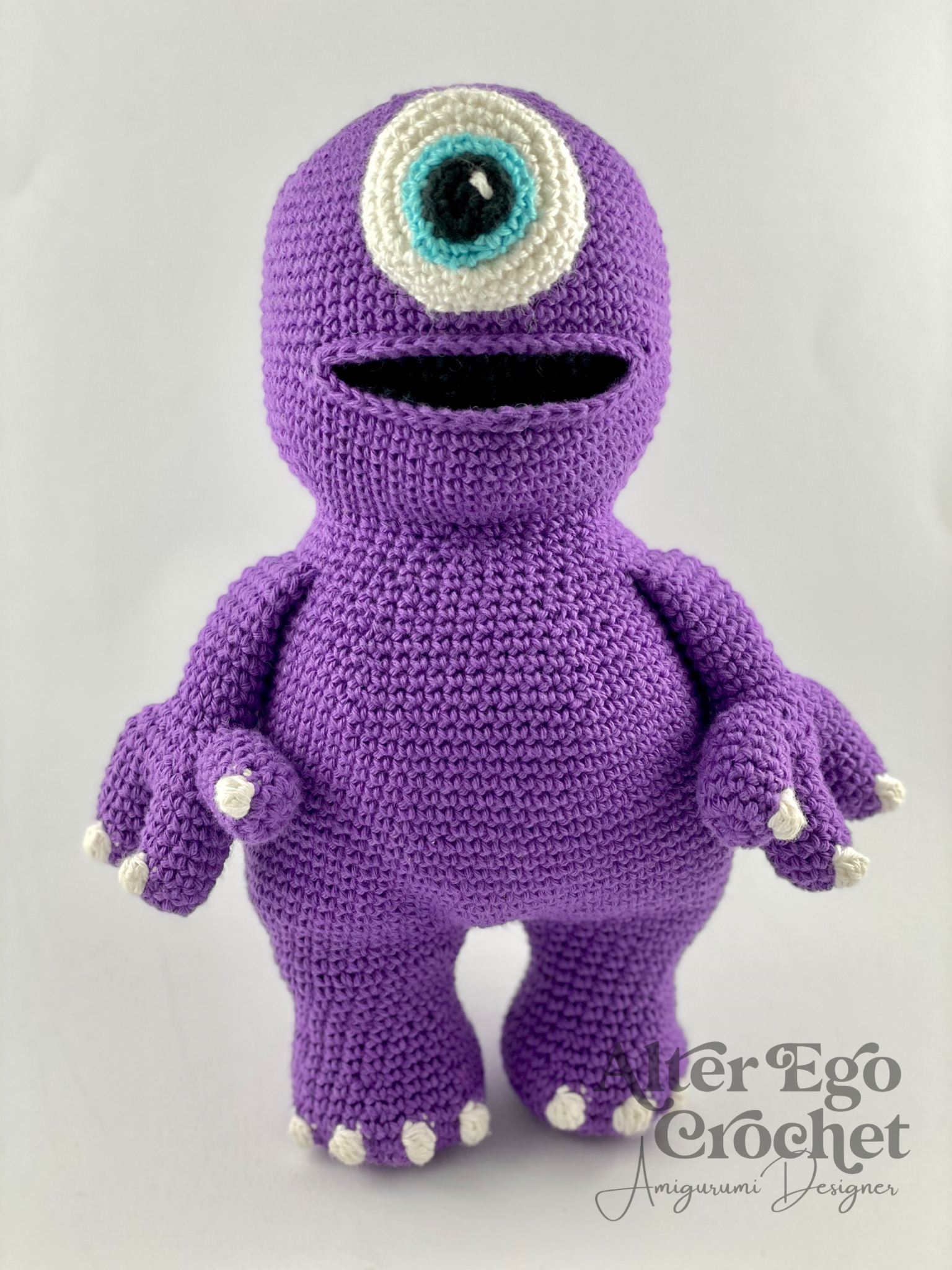 Monsteret bliver 26 cm. hvis du bruger samme garn og hæklenål som mig. Du kan sagtens bruge en anden nål og andet garn, hvis han skal være større eller mindre.