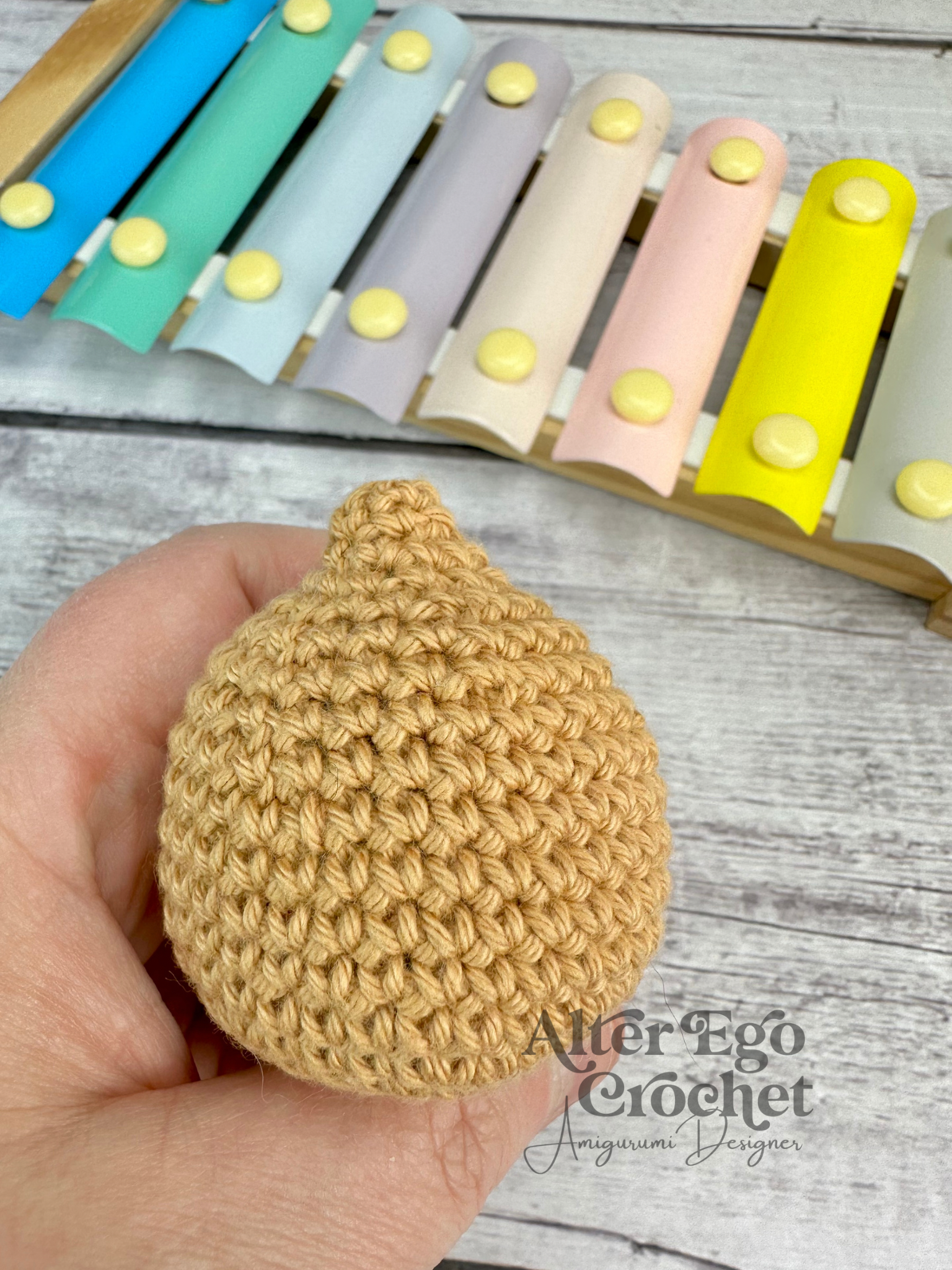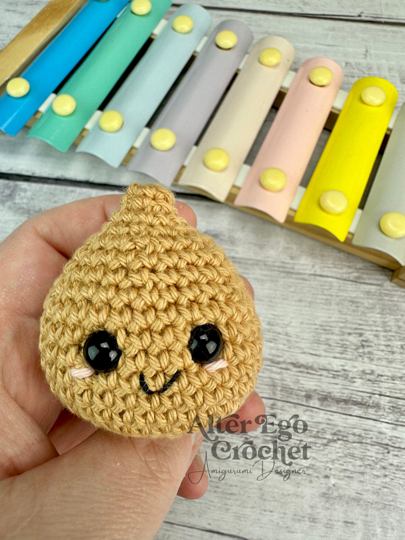 Ozzy bliver 5 cm. hvis du bruger samme garn og hæklenål som mig. Du kan sagtens bruge en anden nål og andet garn, hvis han skal være større eller mindre.