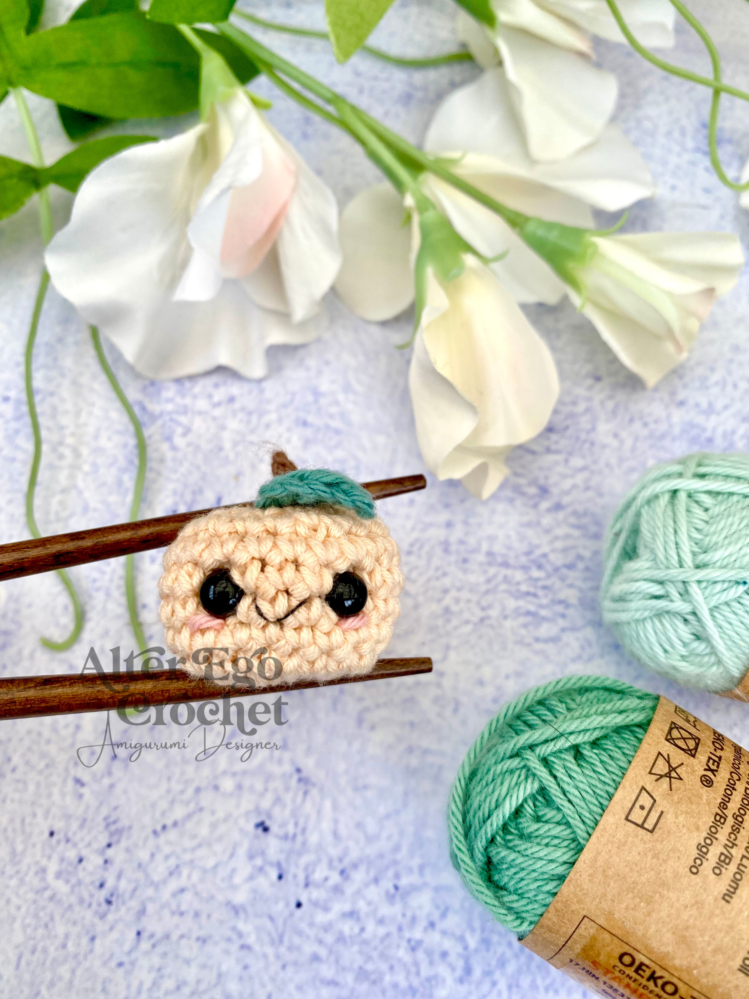 - Garn ( Jeg bruger 8/4 bomuld, men du kan bruge lige det du har lyst til. De bliver rigtig søde i f.eks. velour garn. De bruger meget lidt garn, så det er perfekt til rester)