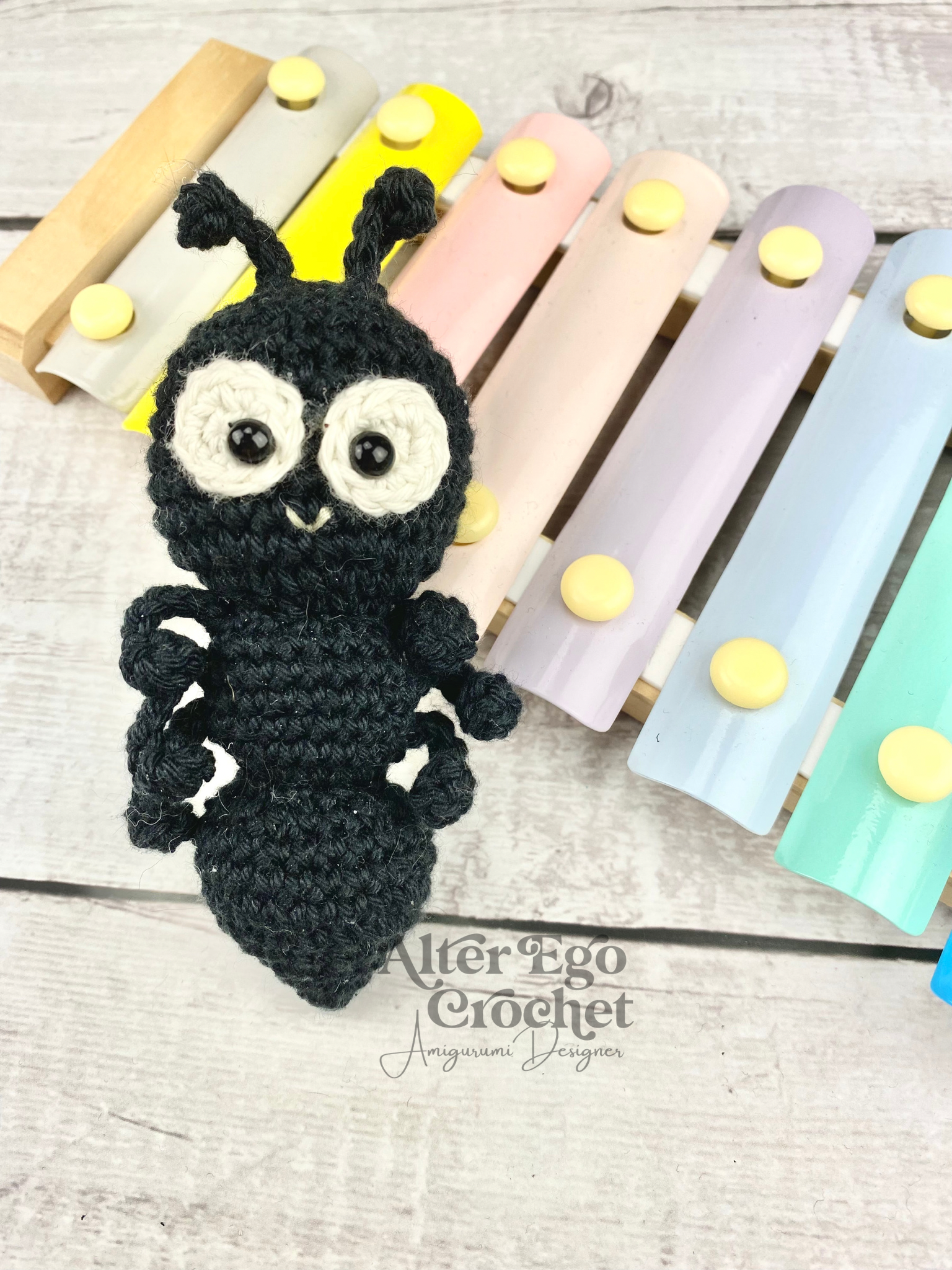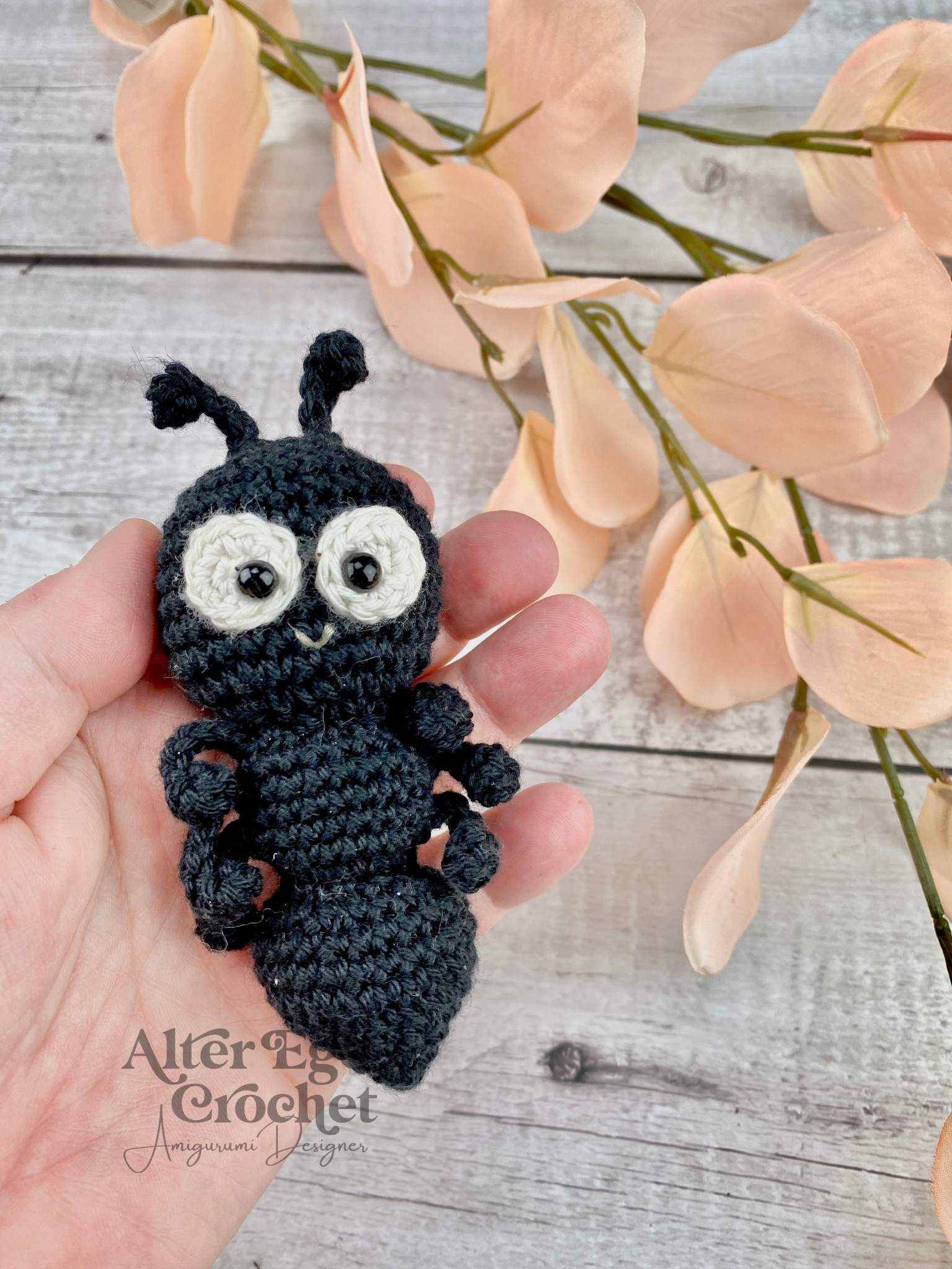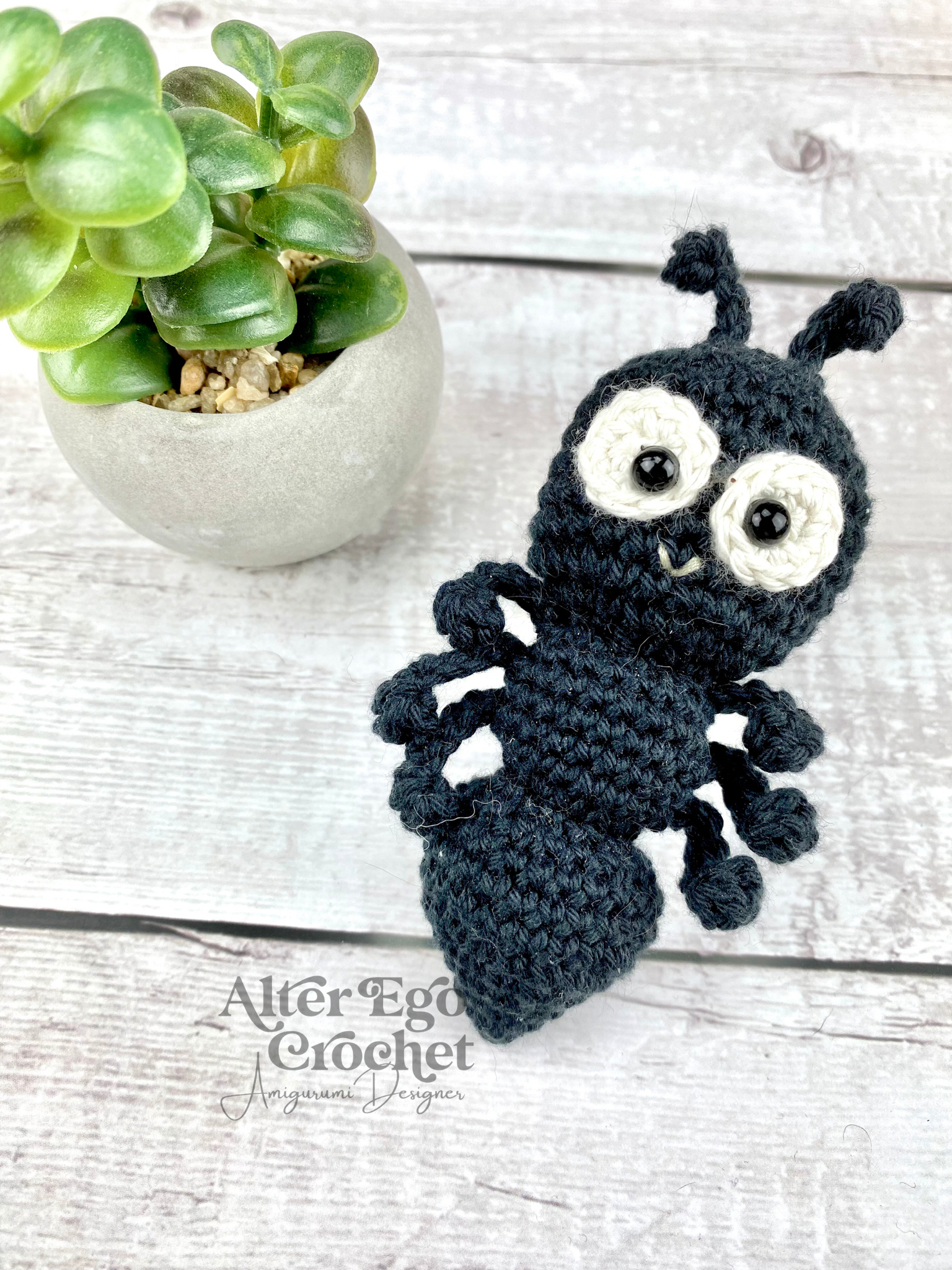 Antonio bliver 11 cm. hvis du bruger samme garn og hæklenål som mig. Du kan sagtens bruge en anden nål og andet garn, hvis han skal være større eller mindre.