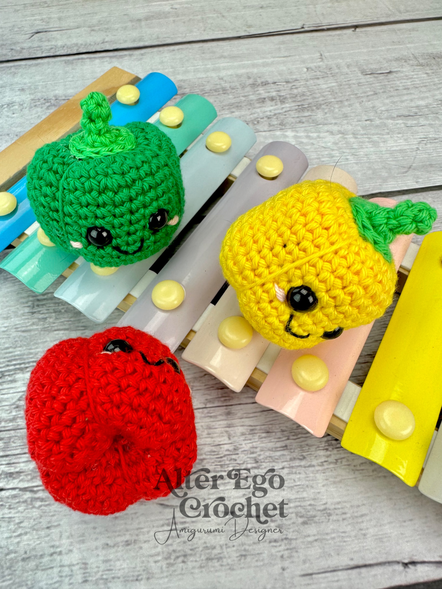 - Garn. Jeg har brugt 8/4 bomuld. Du skal bruge 5 g rød/grøn/gul, 1 g lysegrøn og lidt lyserød