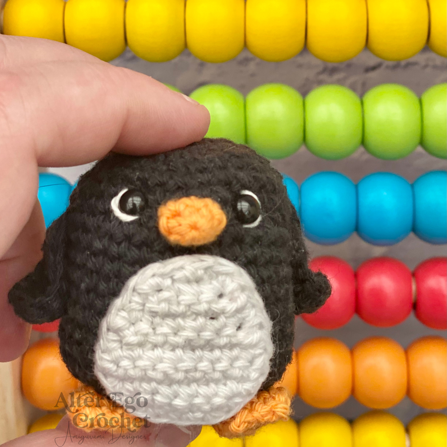 Percy bliver 5,5 cm. hvis du bruger samme garn og hæklenål som mig. Du kan sagtens bruge en anden nål og andet garn, hvis han skal være større eller mindre.
