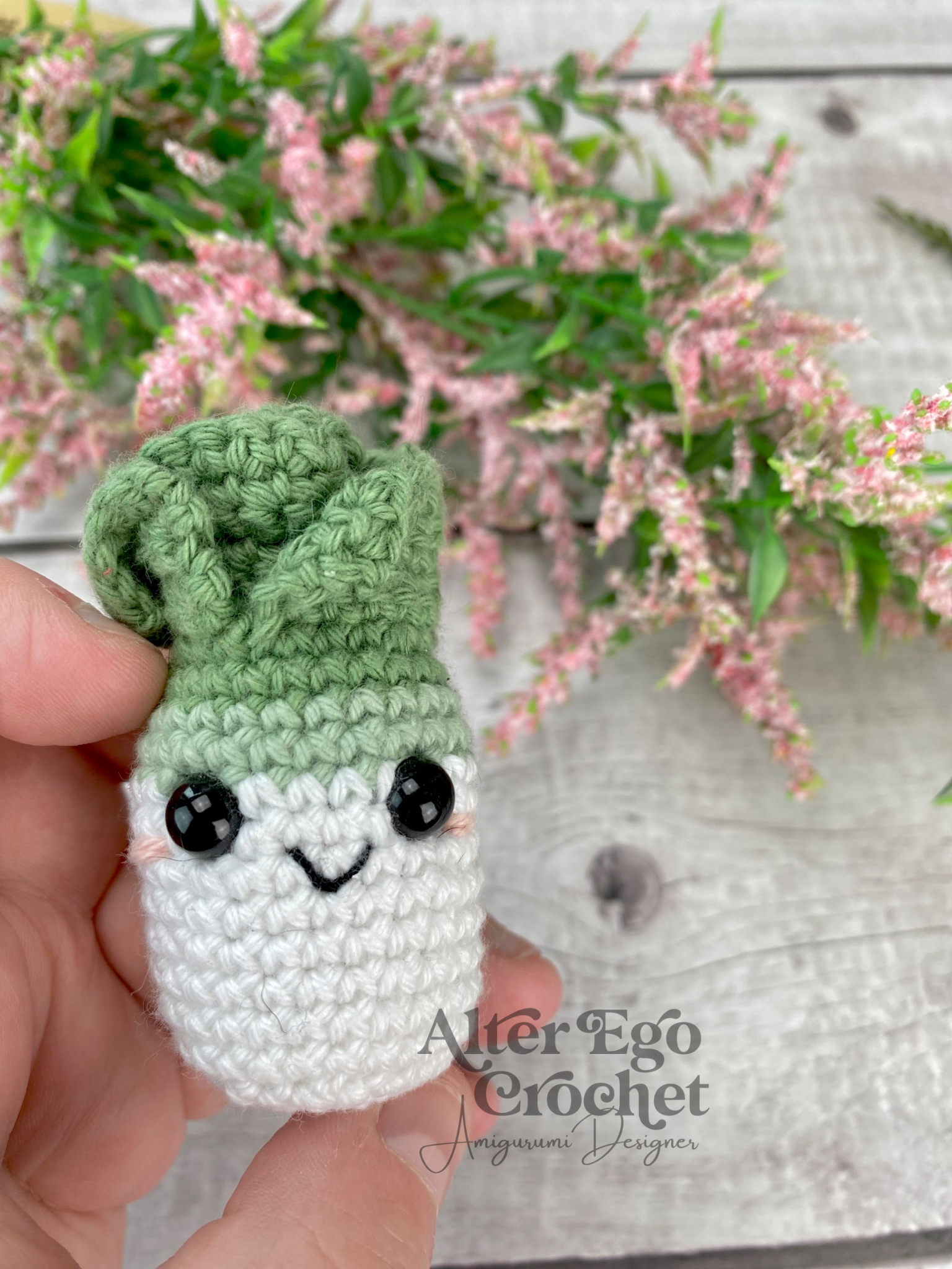 - Garn: Jeg har brugt 8/4 bomuld - 8 g lysebrun, 4 g brun, 2 g hvid, 4 g grøn, 1 g lysegrøn og lidt lyserød