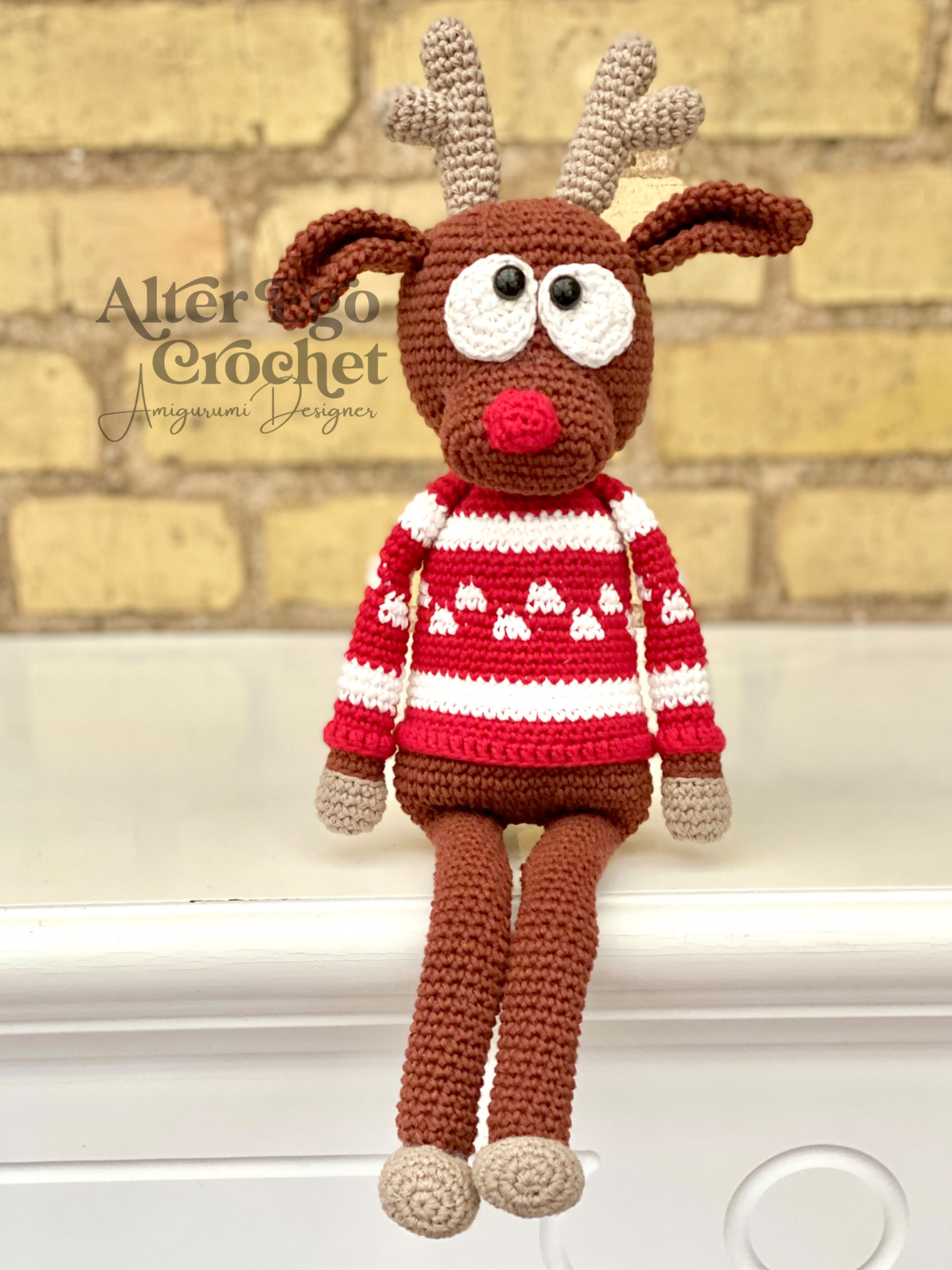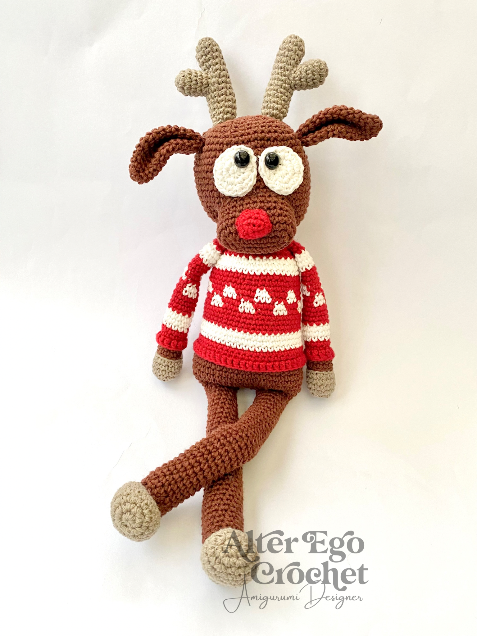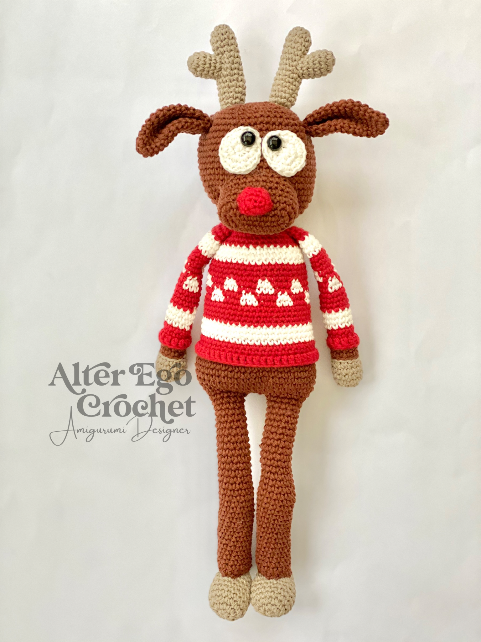 Rupert bliver 40 cm. hvis du bruger samme garn og hæklenål som mig. Du kan sagtens bruge en anden nål og andet garn, hvis han skal være større eller mindre.