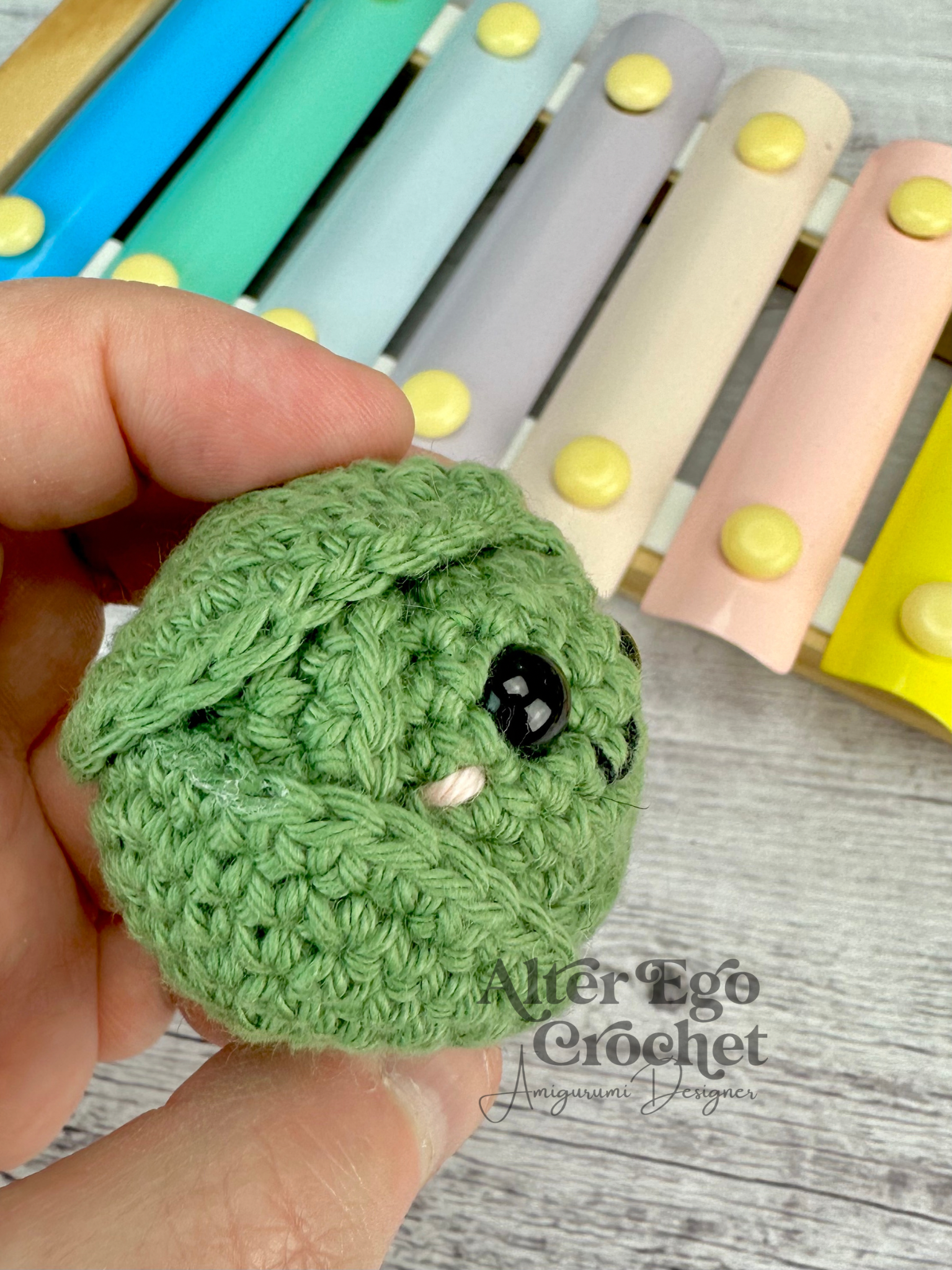 Bradley bliver 5 cm. hvis du bruger samme garn og hæklenål som mig. Du kan sagtens bruge en anden nål og andet garn, hvis han skal være større eller mindre.