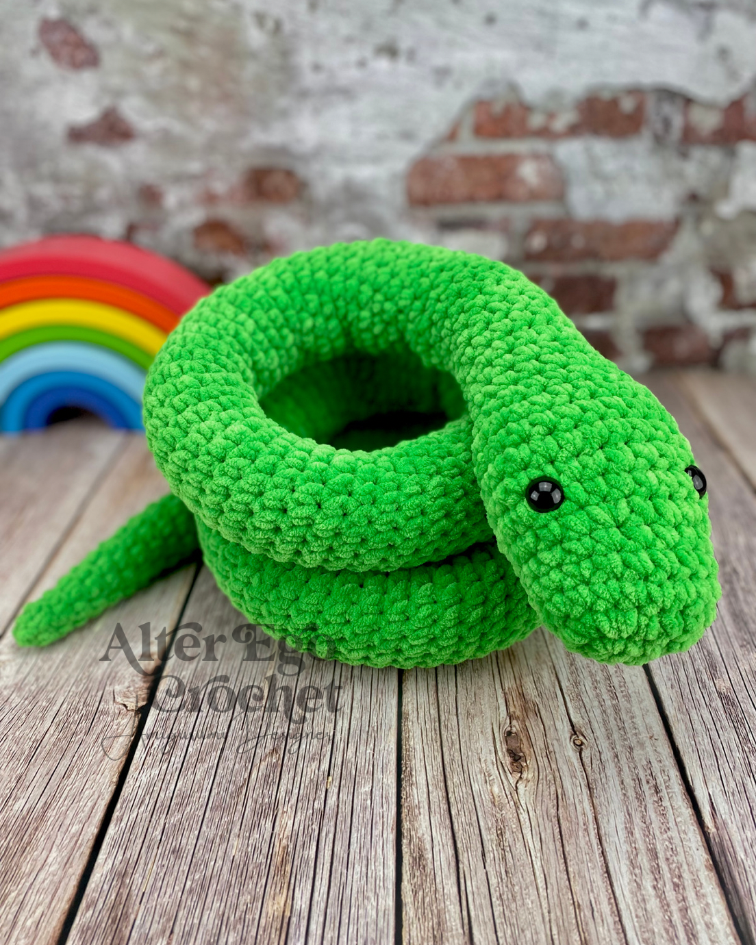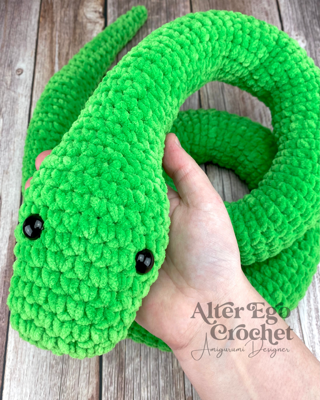 Slangen Salazar bliver 157 cm. hvis du bruger samme garn og hæklenål som mig. Du kan sagtens bruge en anden nål og andet garn, hvis han skal være større eller mindre.