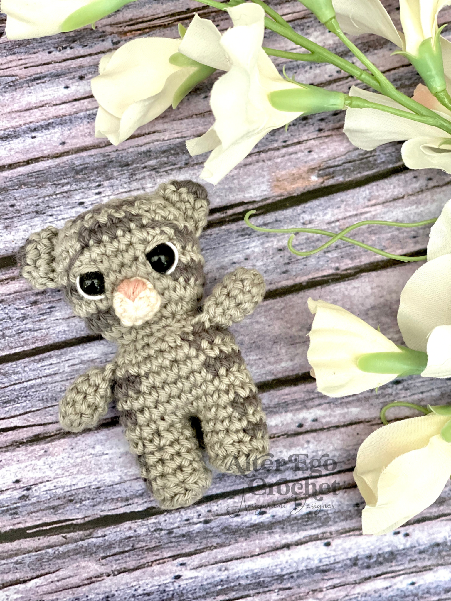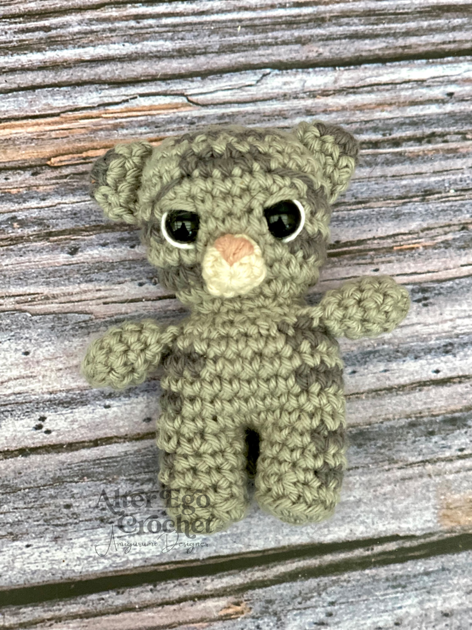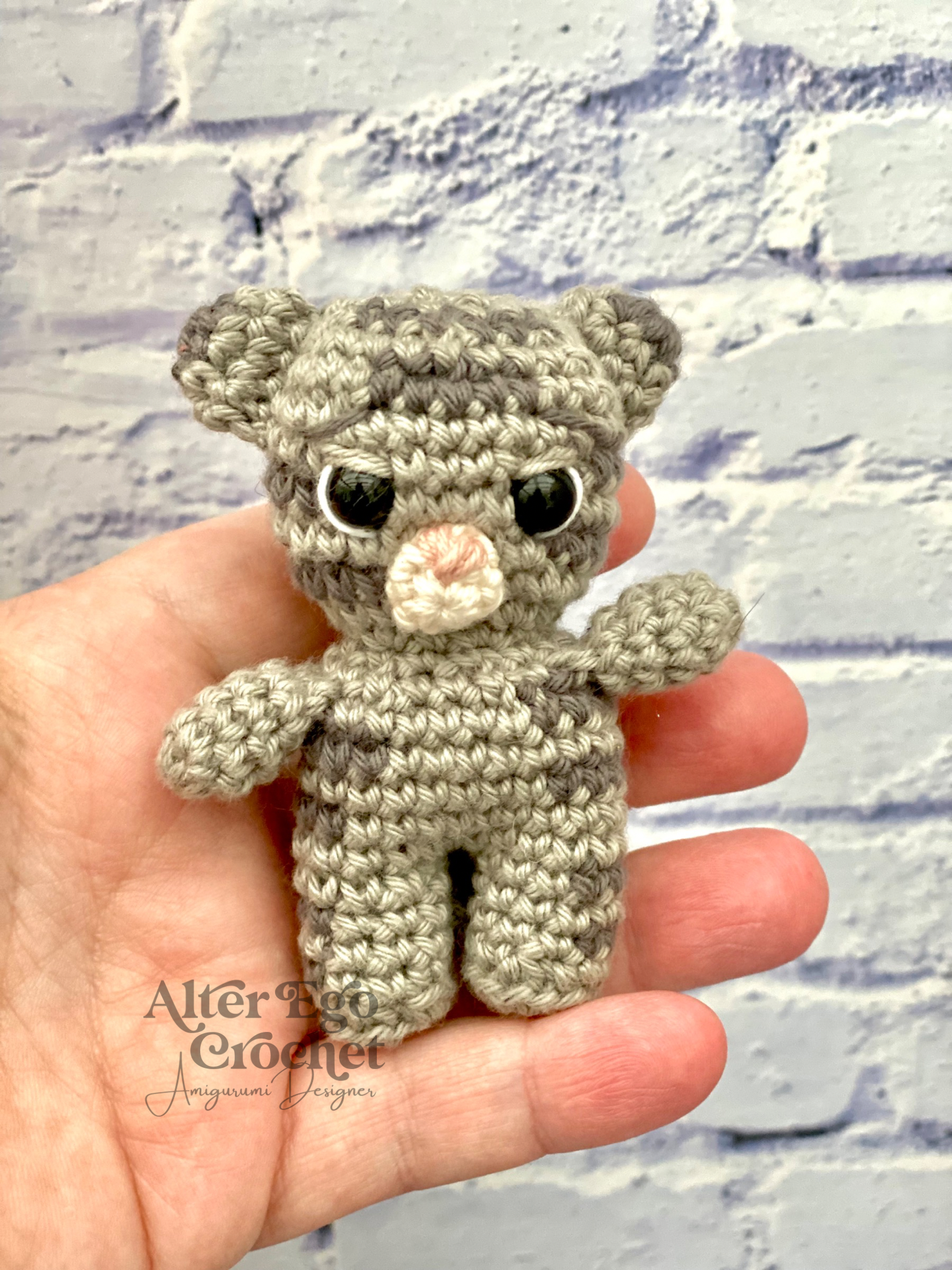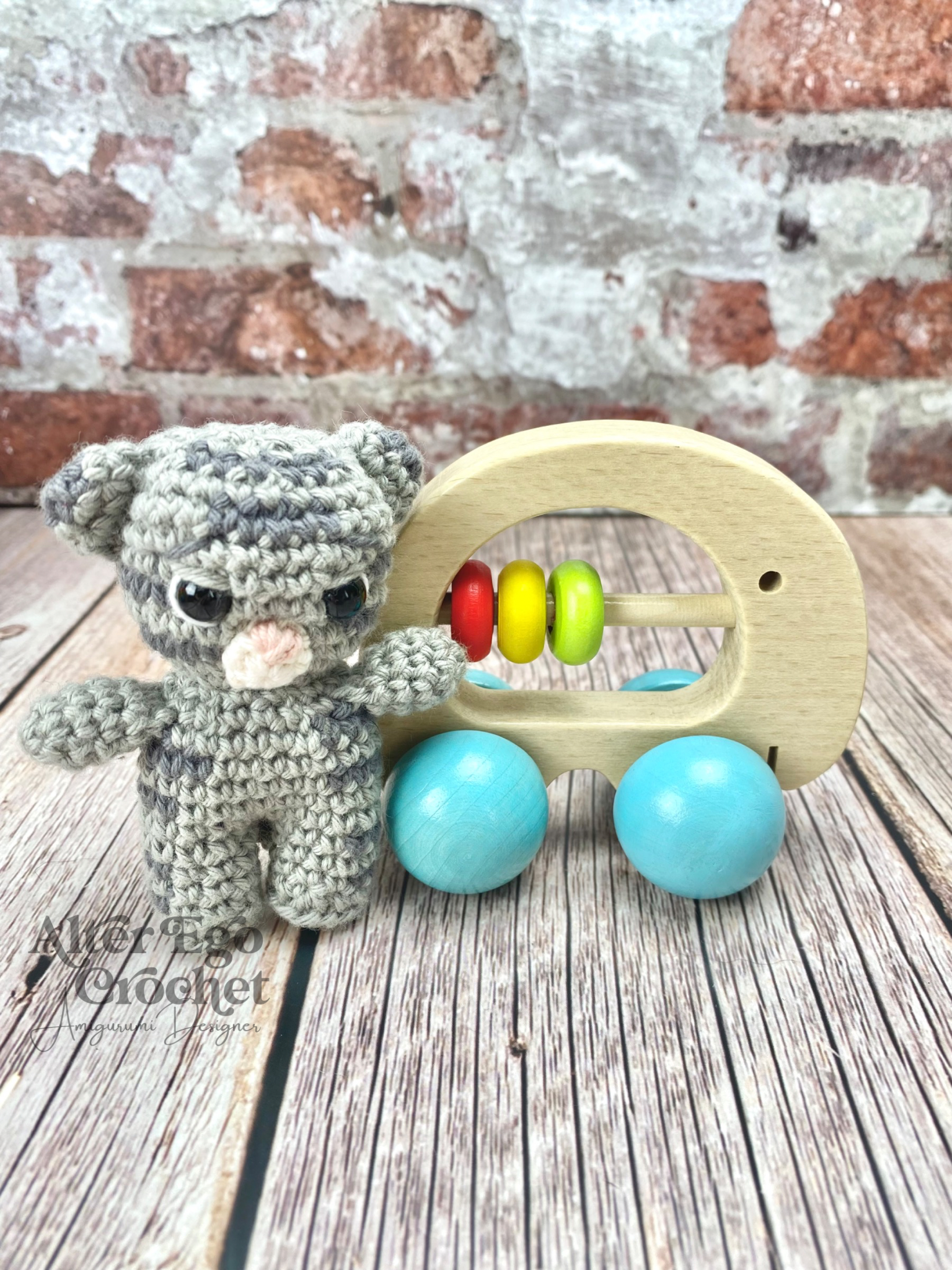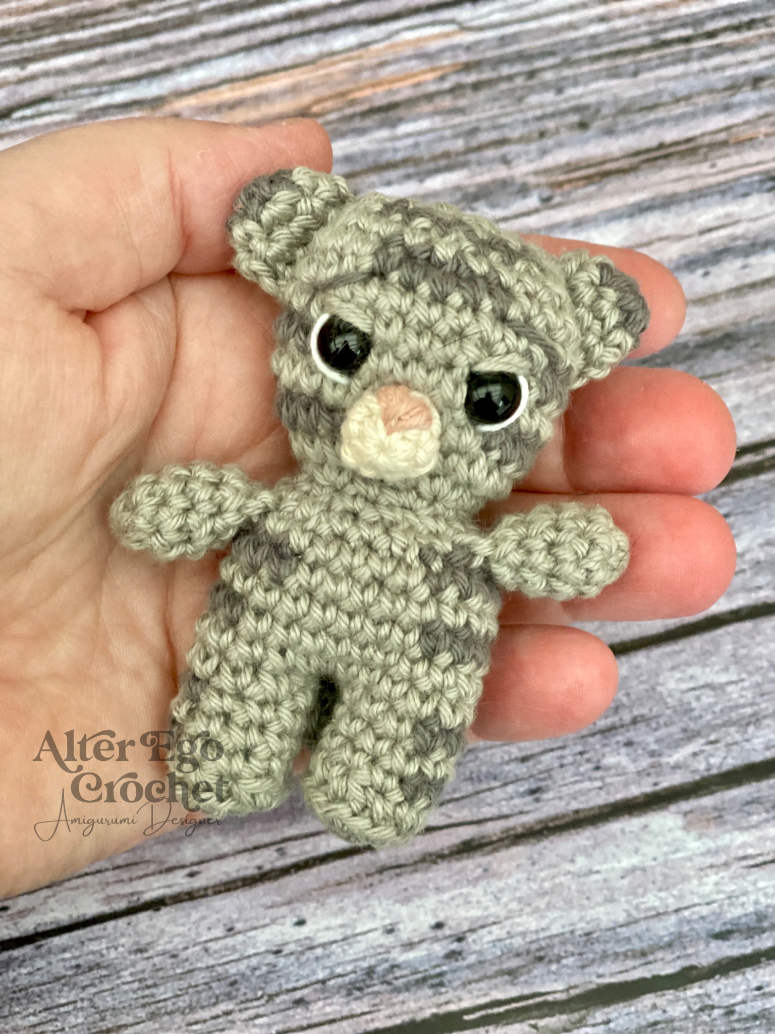 Ben, arme og krop er hæklet sammen, så det er kun ører, snude og hale, der skal monteres.
