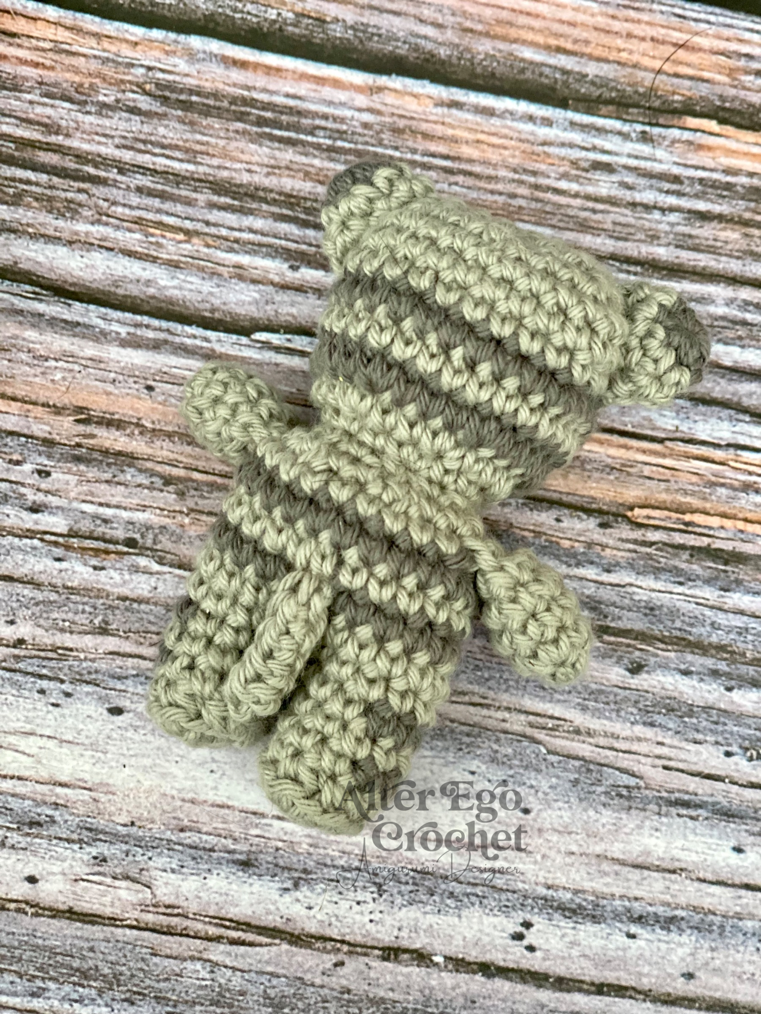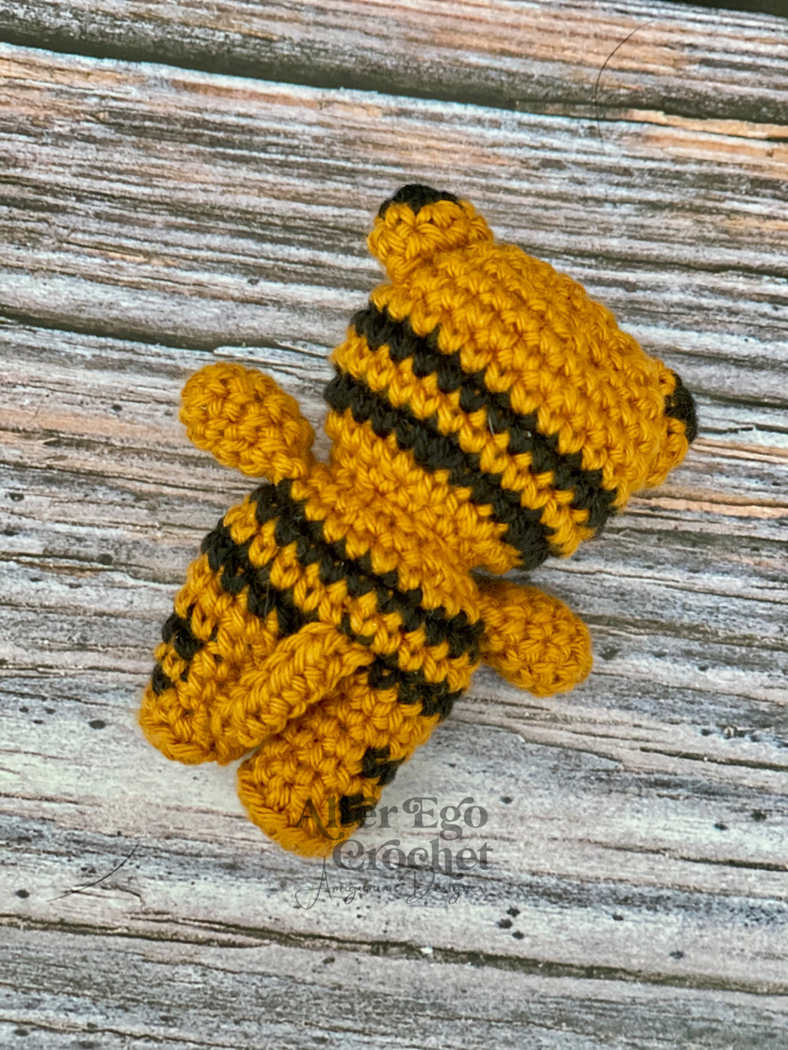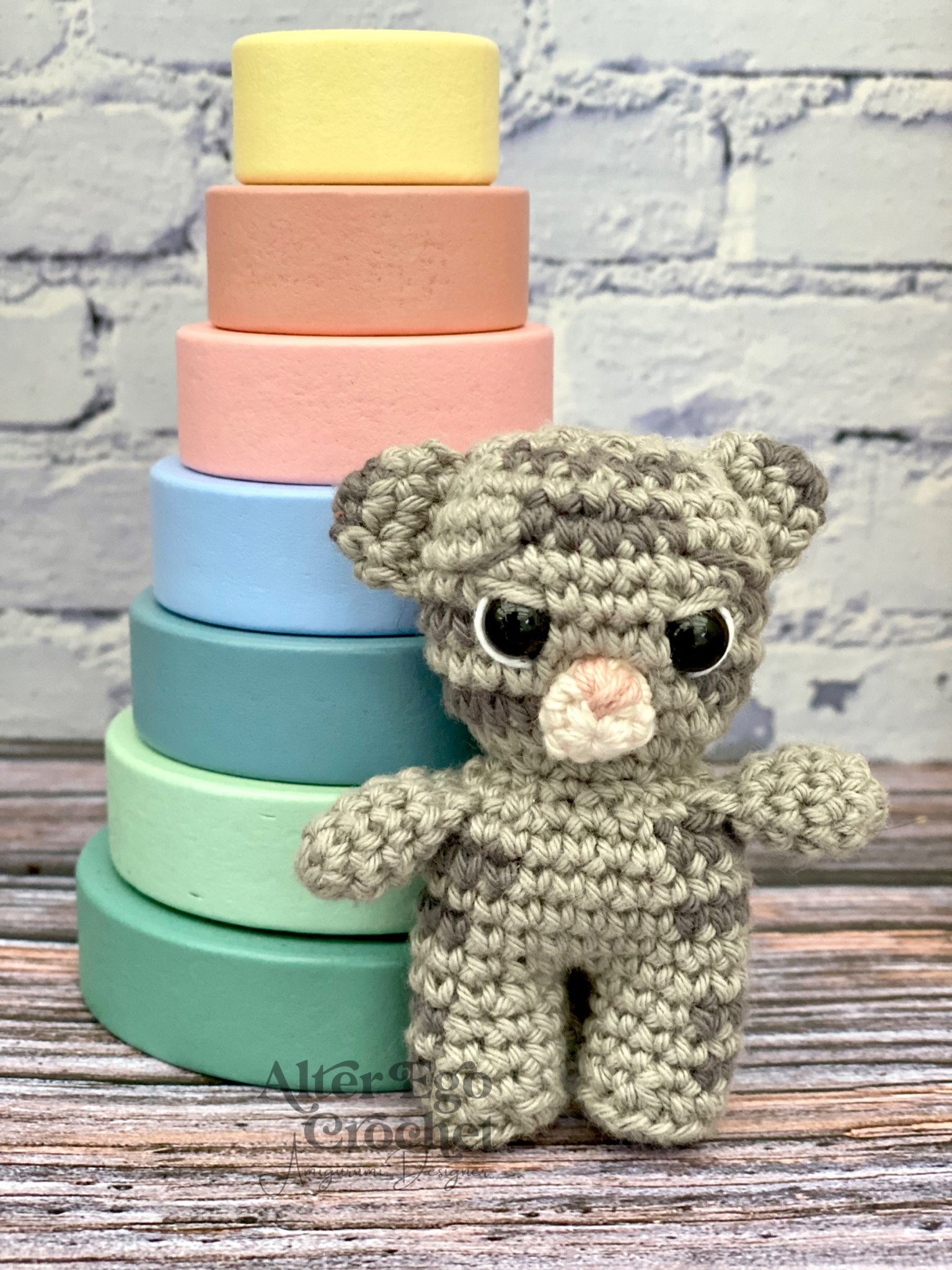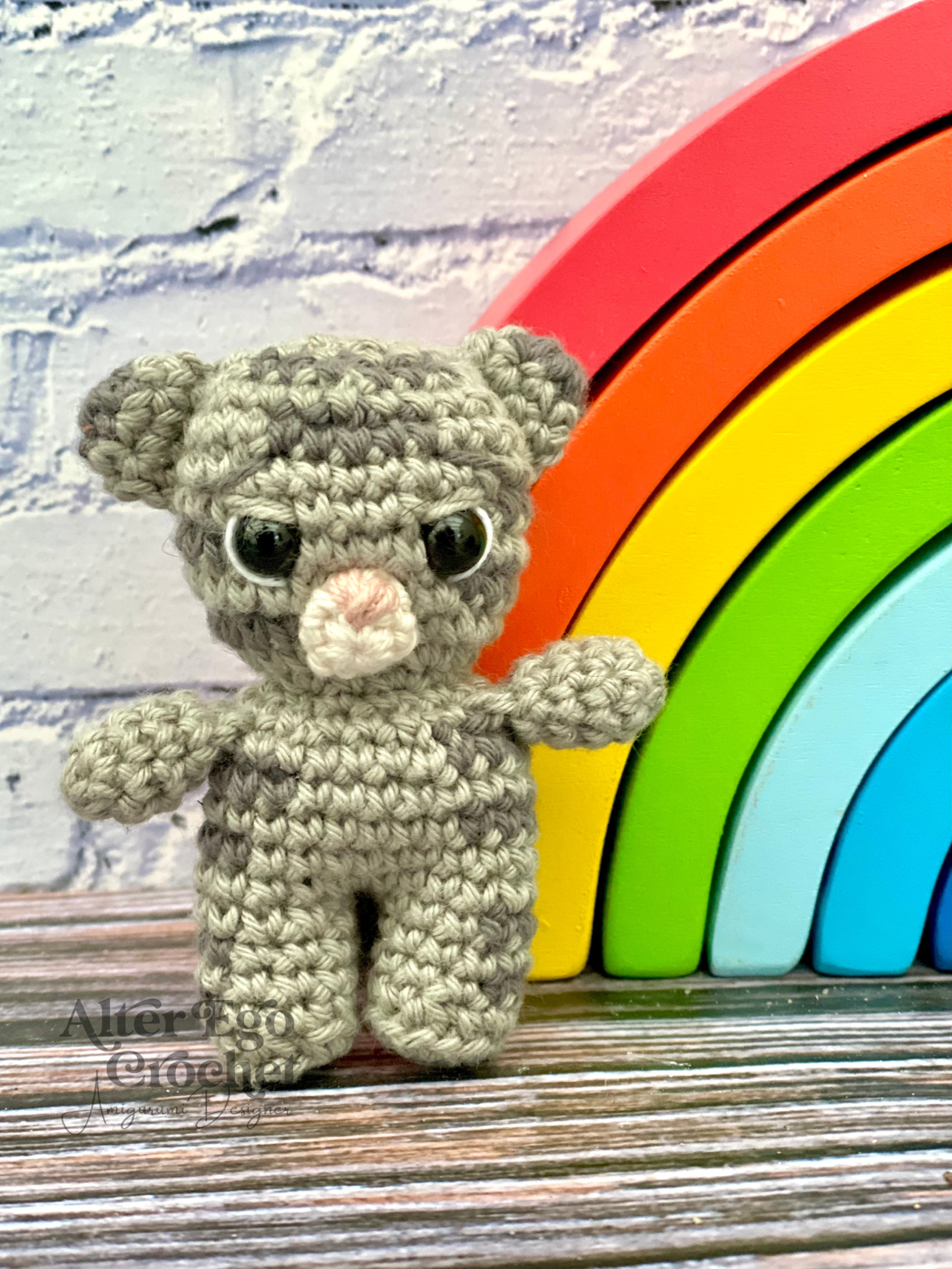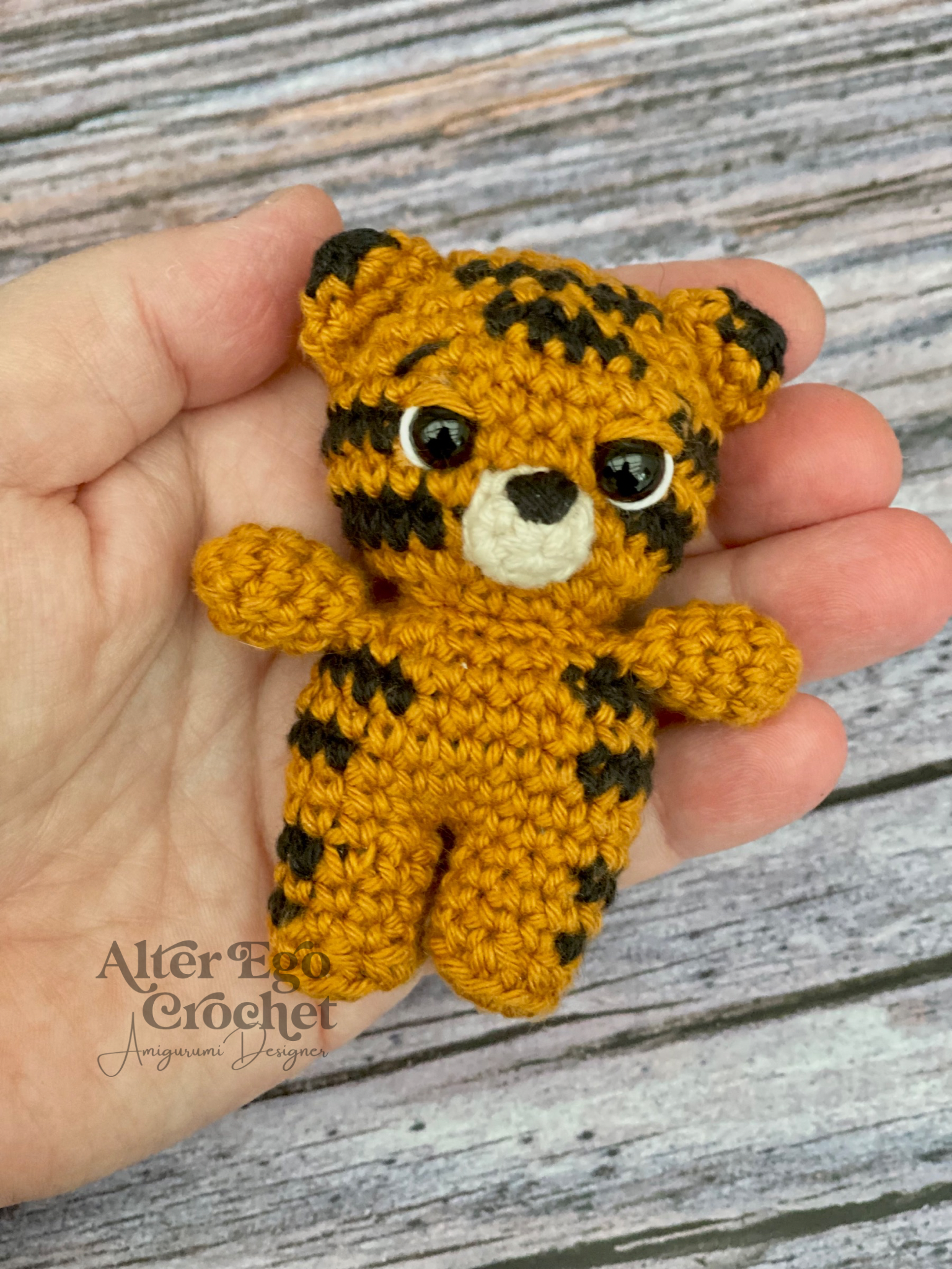 Ben, arme og krop er hæklet sammen, så det er kun ører, snude og hale, der skal monteres.