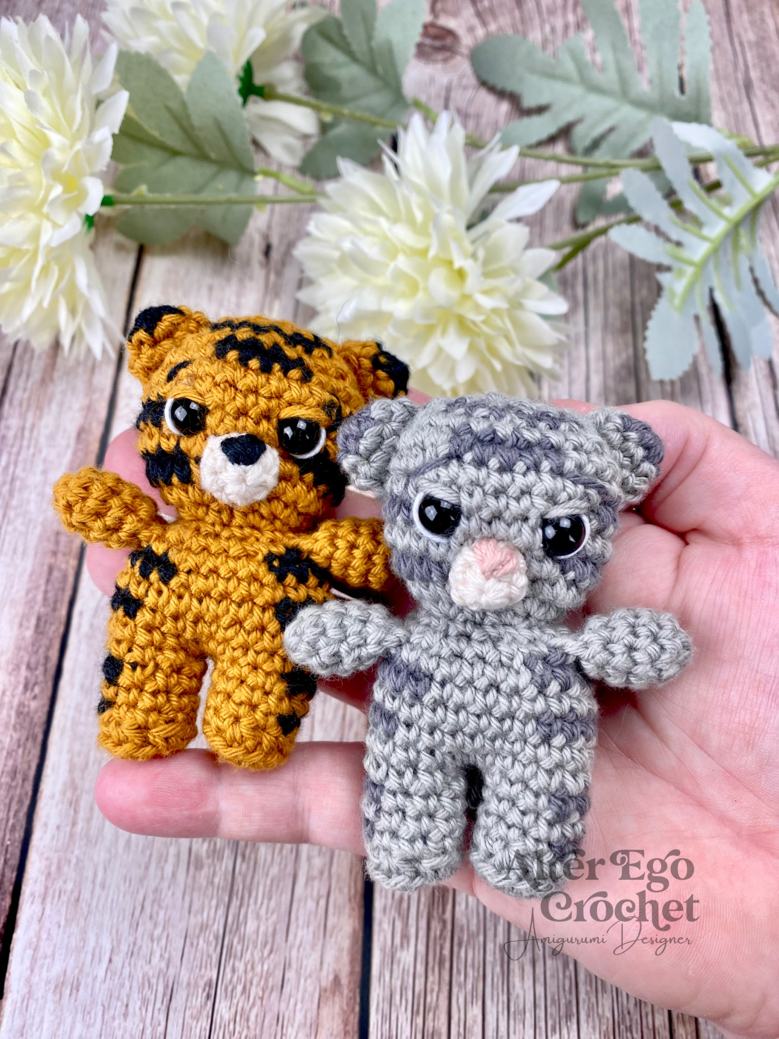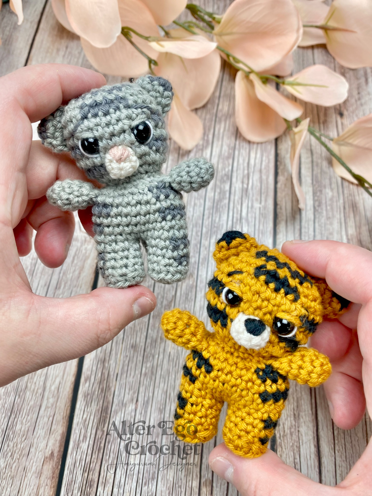Cloe og Timmy bliver 8 cm hvis du bruger samme garn og hæklenål som mig. Du kan bruge andet garn eller hæklenål, hvis han skal være større eller mindre.